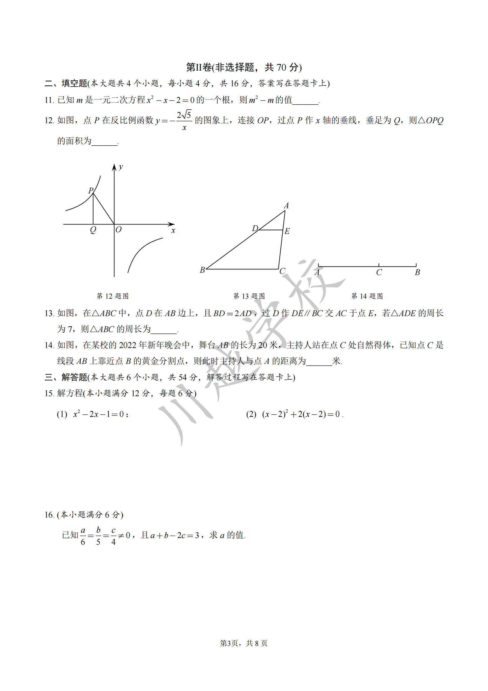 2024-01-30 | 文章來(lái)源:2022年武侯區(qū)九年級(jí)數(shù)學(xué)上期末試卷及參考答案 | 分享到: