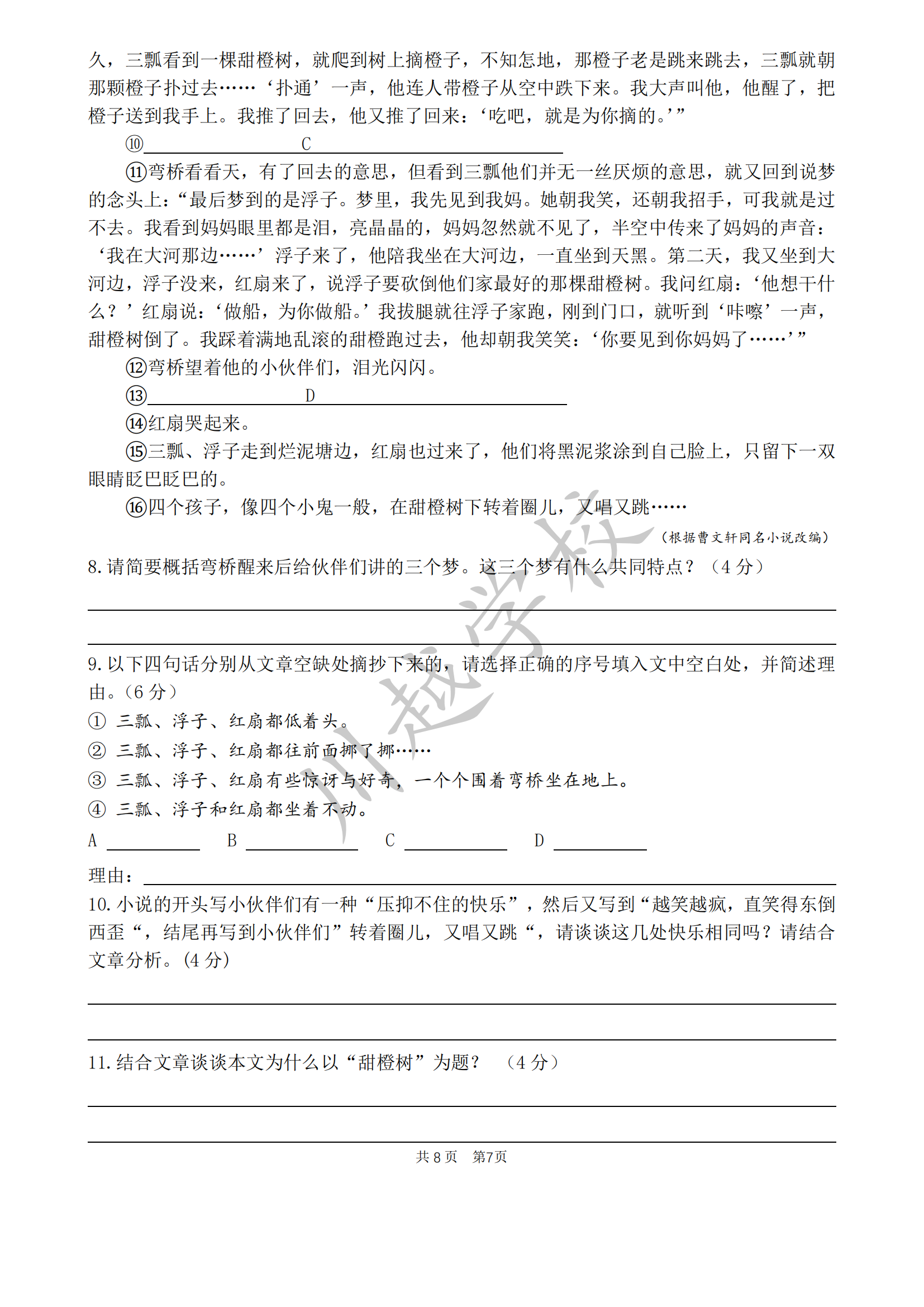 2024-01-30 | 文章來源:四川省成都七中八一學(xué)校2022-2023學(xué)年八年級上學(xué)期12月期末語文試題 | 分享到: