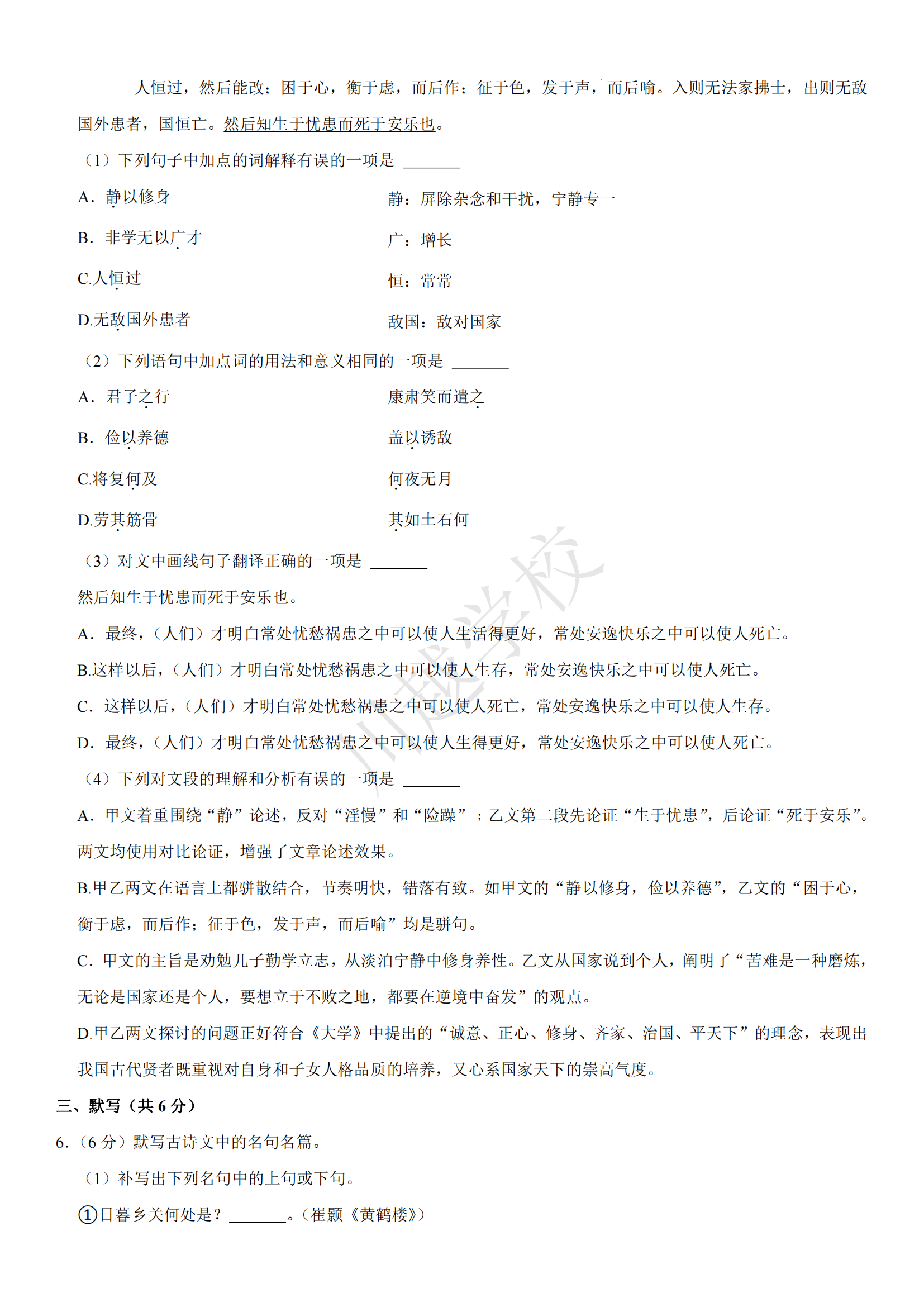 2024-01-30 | 文章來(lái)源:四川省成都市龍泉驛區(qū)2022-2023學(xué)年八年級(jí)上學(xué)期期末考試語(yǔ)文試卷 | 分享到: