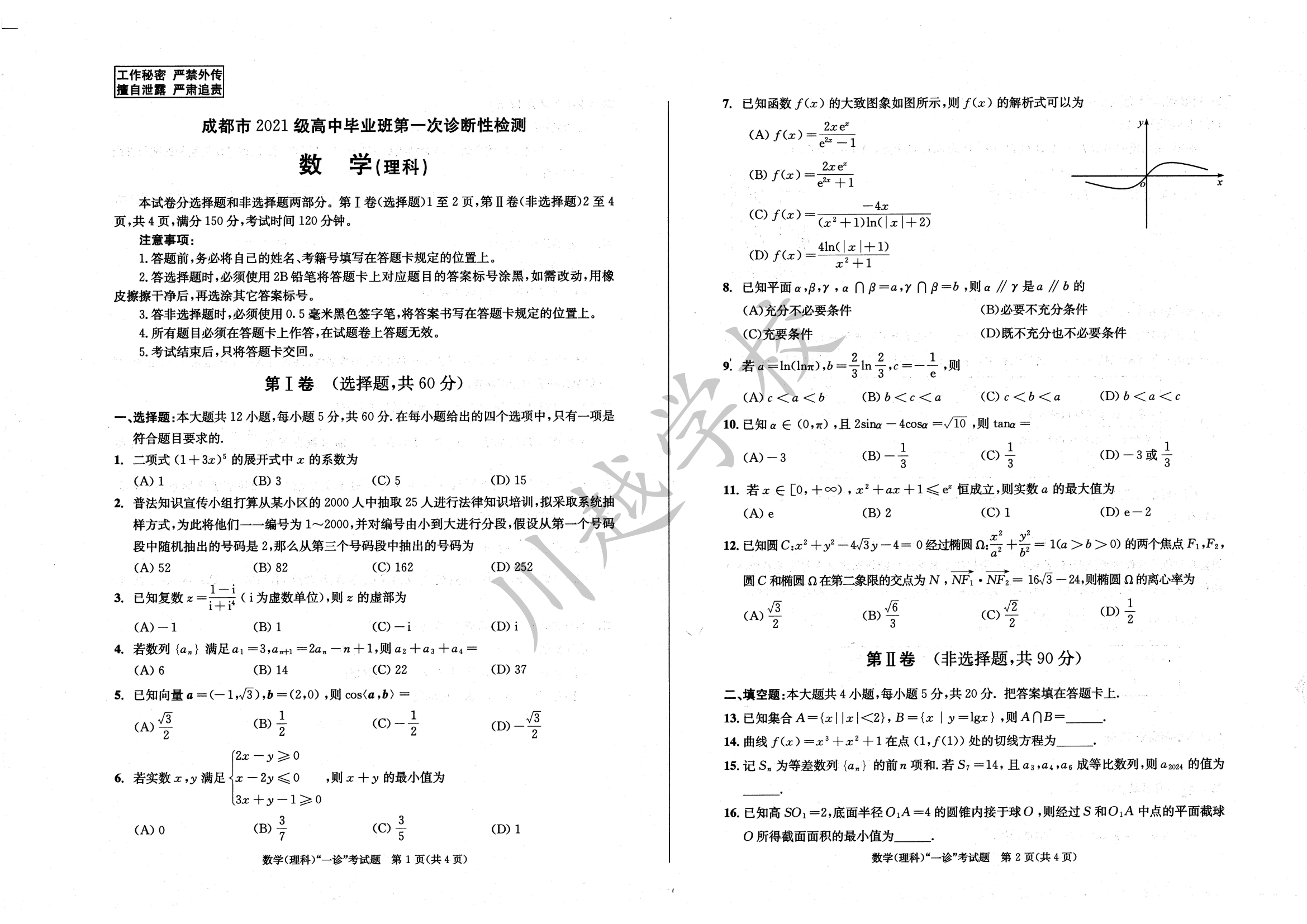 成都高三二診試題(數(shù)學(xué)理科) 2021-03-30