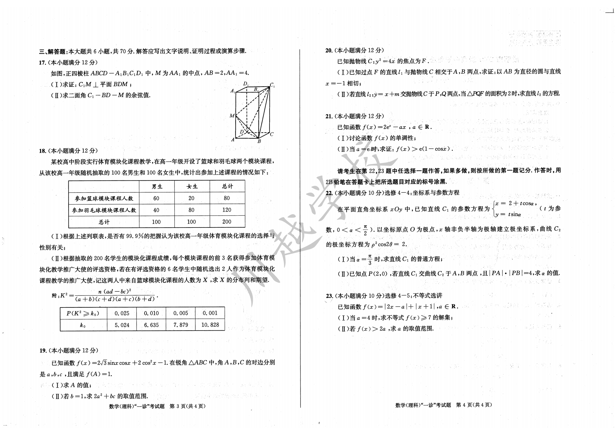 2024屆高三一診數(shù)學(xué)試卷(理科)