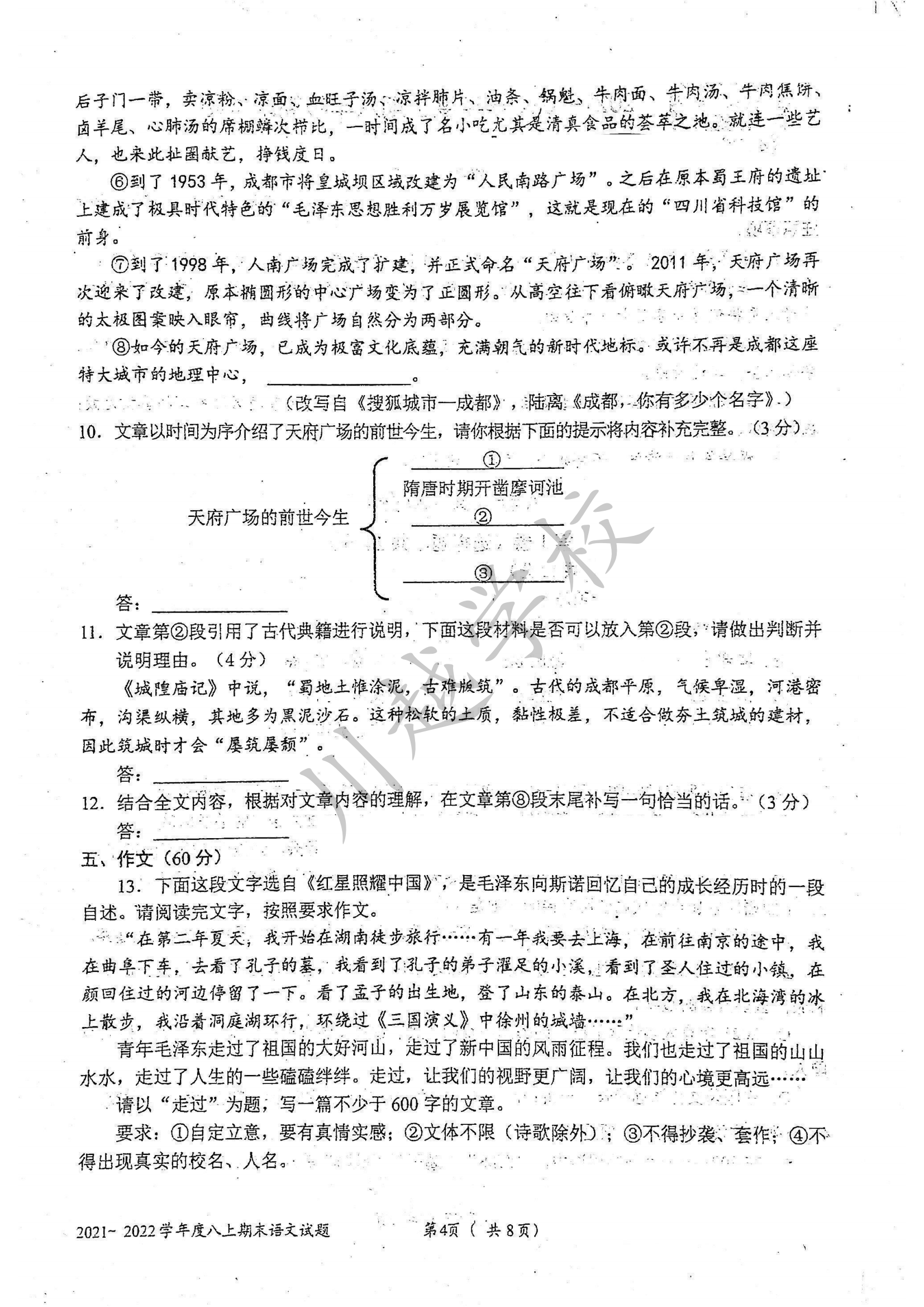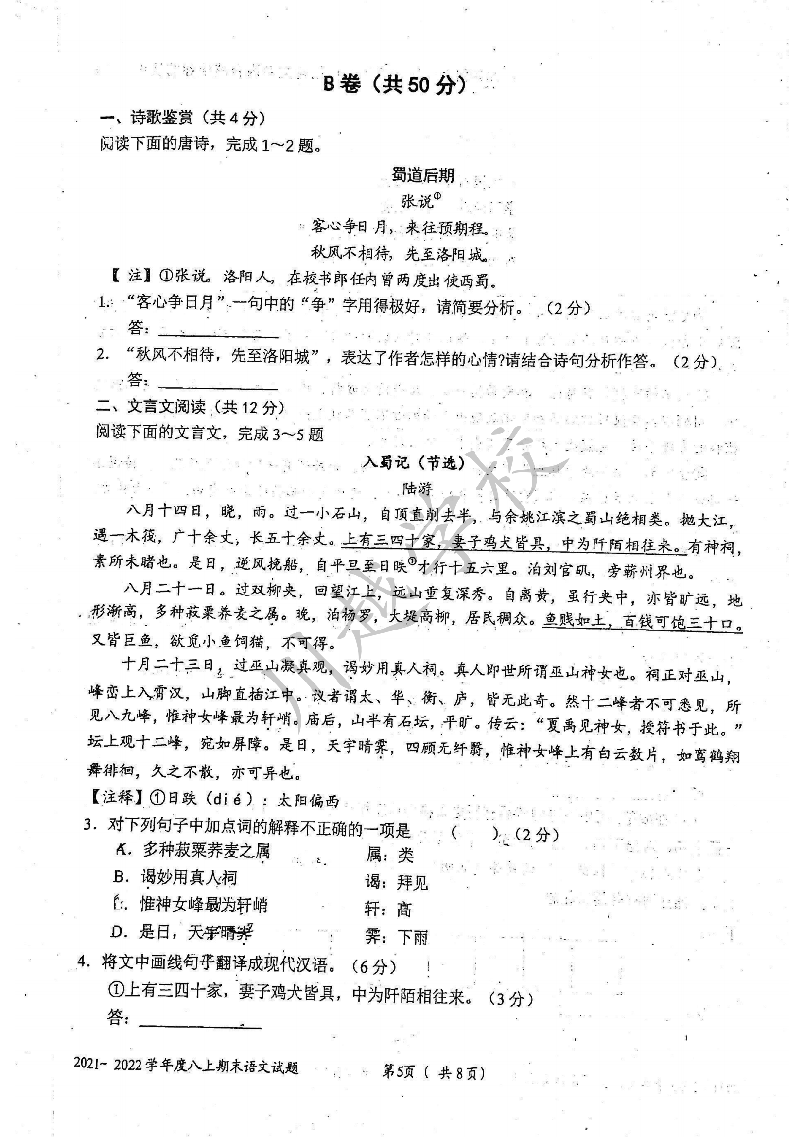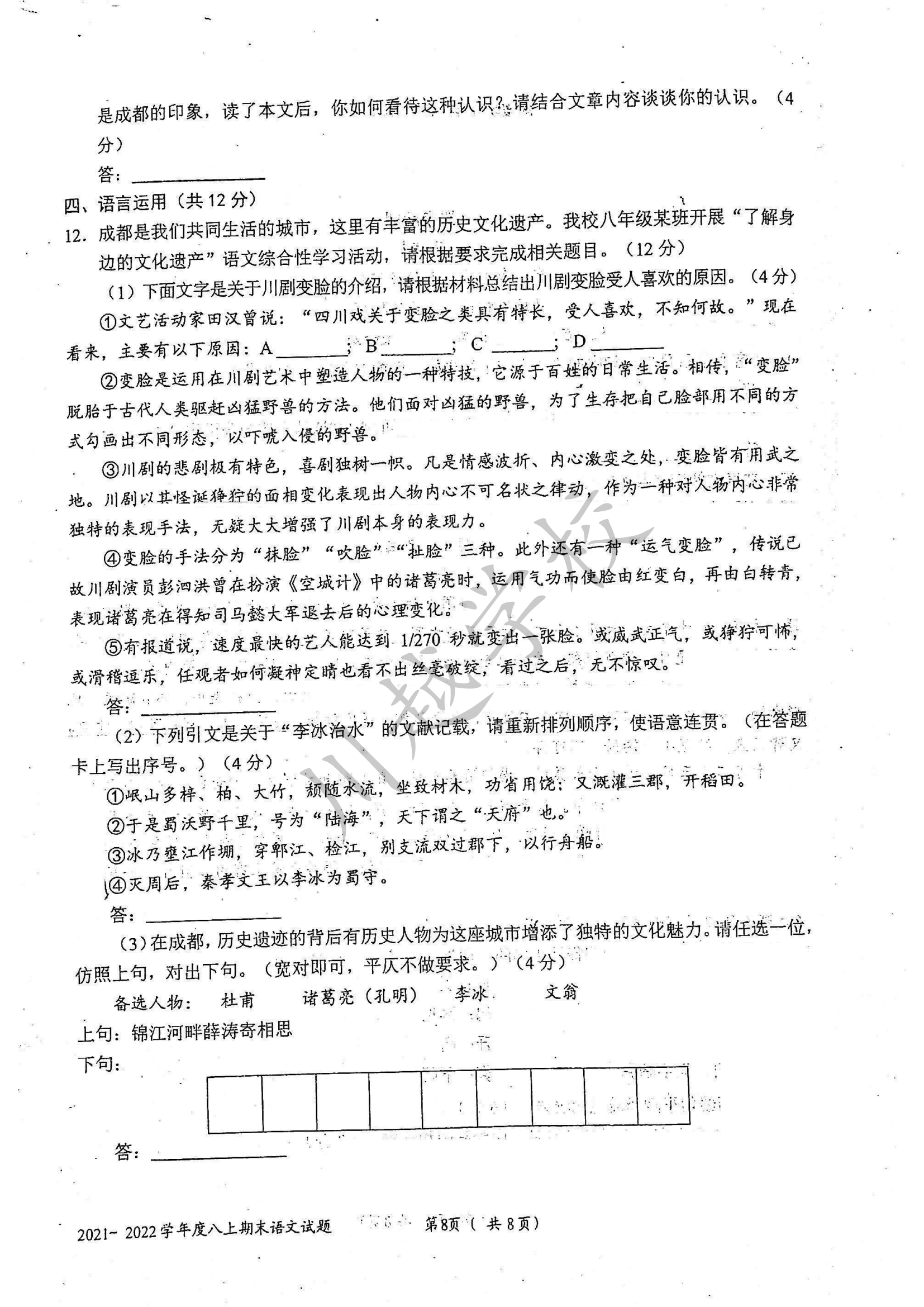 四川省成都市青羊區(qū)石室聯(lián)合中學2021-2022學年八年級上學期期末語文試題