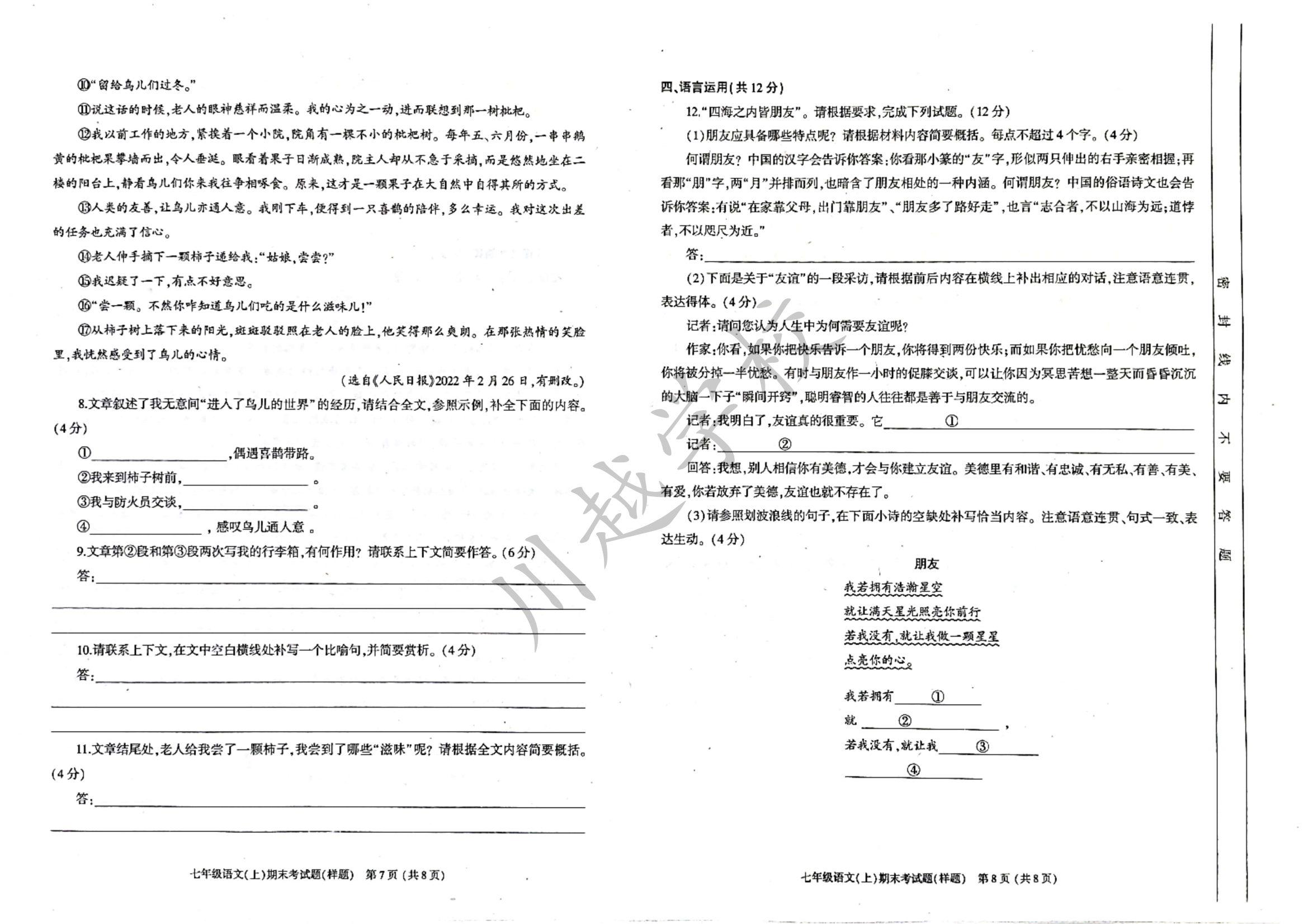 2024-02-01 | 文章來(lái)源:四川省成都市金牛區(qū)2022-2023學(xué)年七年級(jí)上學(xué)期期末語(yǔ)文試題 | 分享到:
