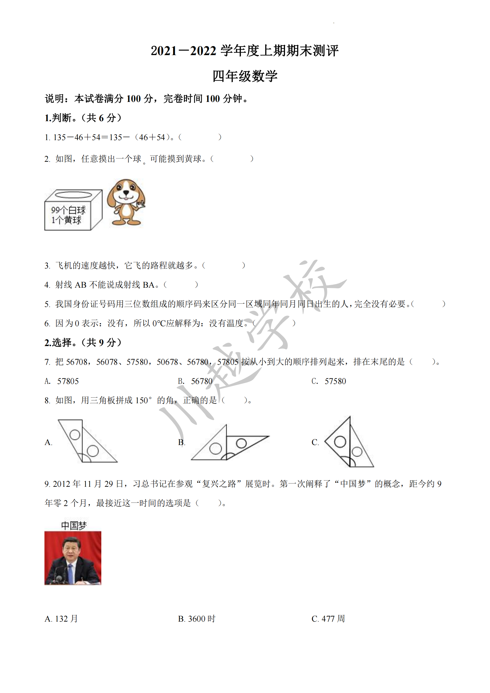 2024-02-01 | 文章來源:2021-2022學年四川省成都市成華區(qū)北師大版四年級上冊期末考試數(shù)學試卷(原卷版) | 分享到: