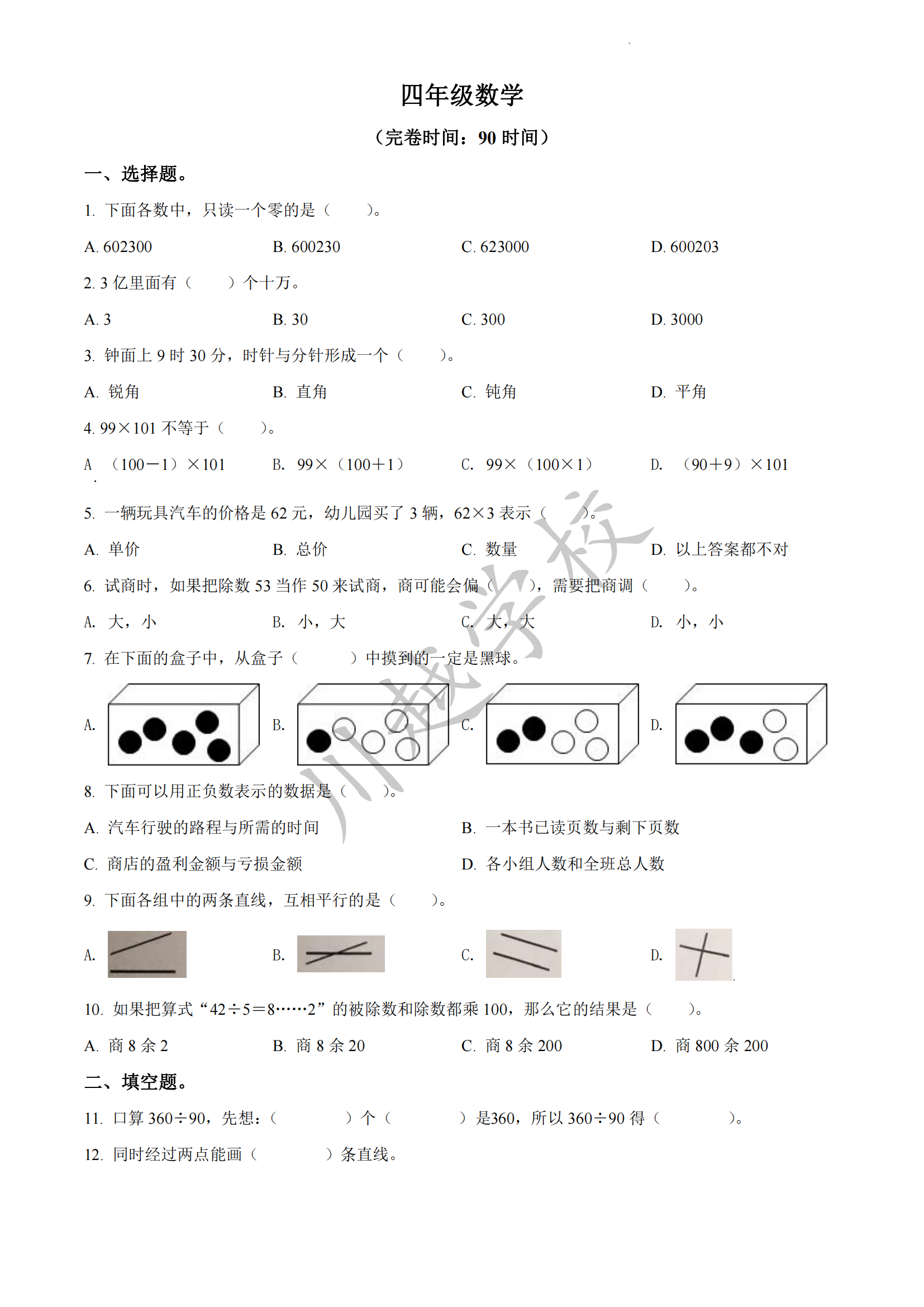 2024-02-01 | 文章來源:2021-2022學年四川省成都市高新區(qū)人教版四年級上冊期末考試數(shù)學試卷(原卷版) | 分享到: