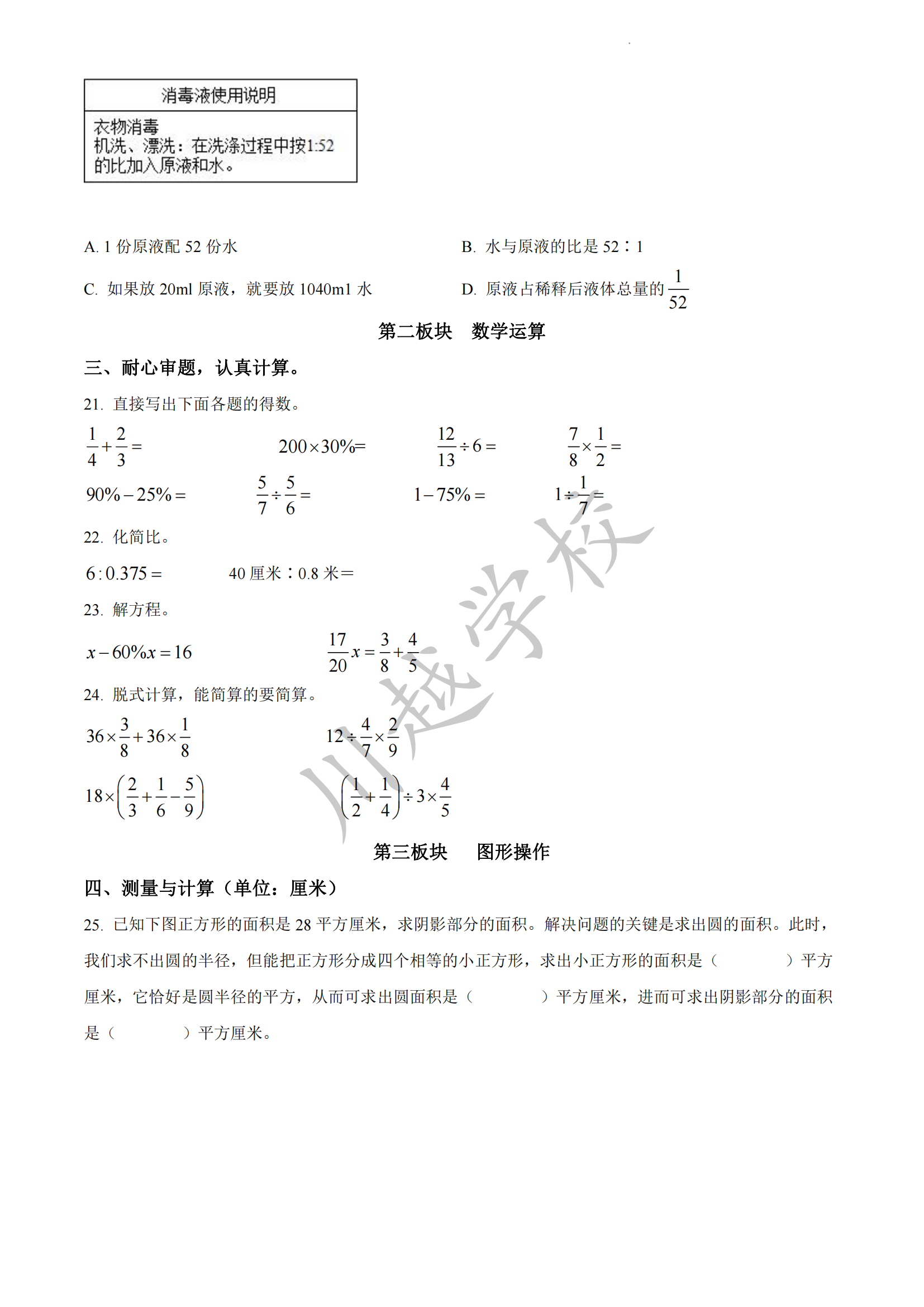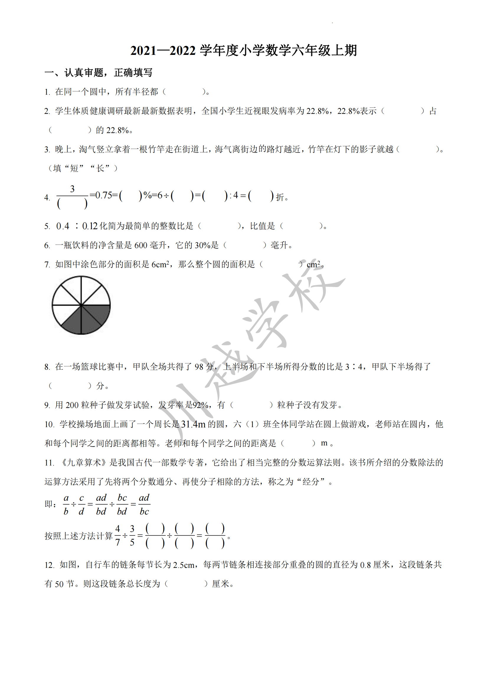 2024-02-01 | 文章來源:2021-2022學(xué)年四川省成都市金牛區(qū)北師大版六年級(jí)上冊(cè)期末考試數(shù)學(xué)試卷(原卷版) | 分享到: