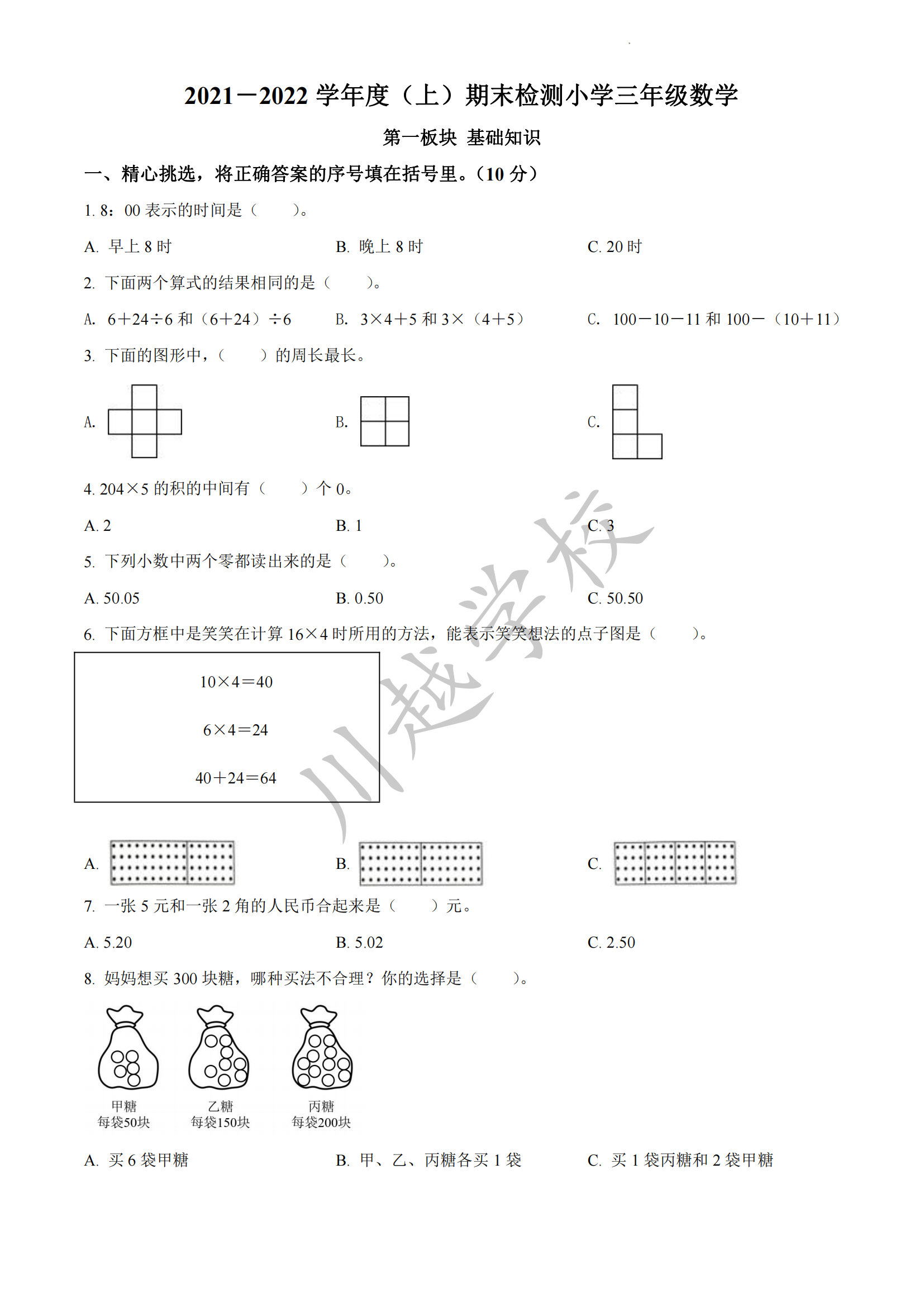 2024-02-01 | 文章來(lái)源:2021-2022學(xué)年四川省成都市金牛區(qū)北師大版三年級(jí)上冊(cè)期末考試數(shù)學(xué)試卷(原卷版) | 分享到: