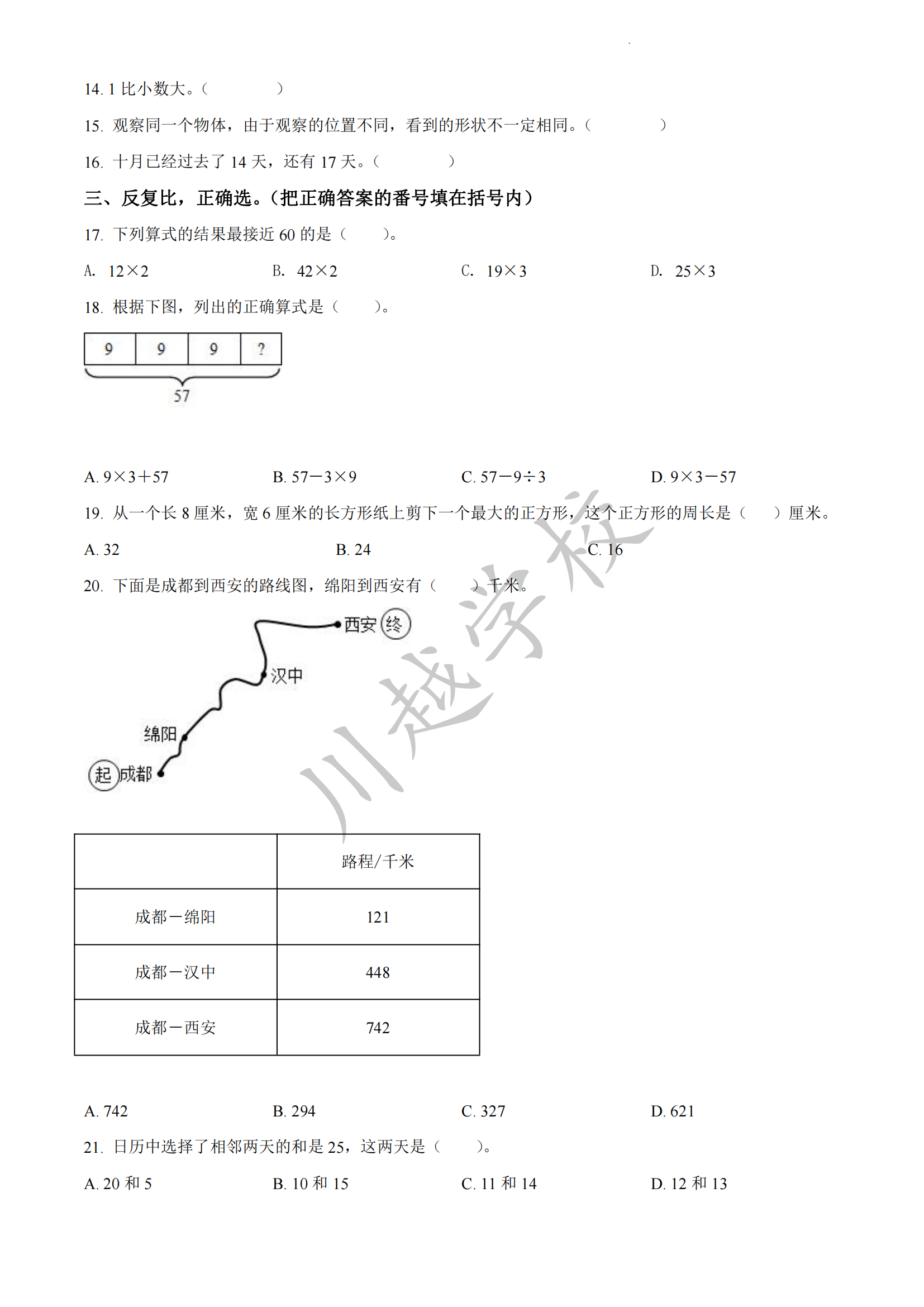 2024-02-01 | 文章來源:2021-2022學(xué)年四川省成都市錦江區(qū)北師大版三年級(jí)上冊(cè)期末測(cè)評(píng)數(shù)學(xué)試卷(原卷版) | 分享到: