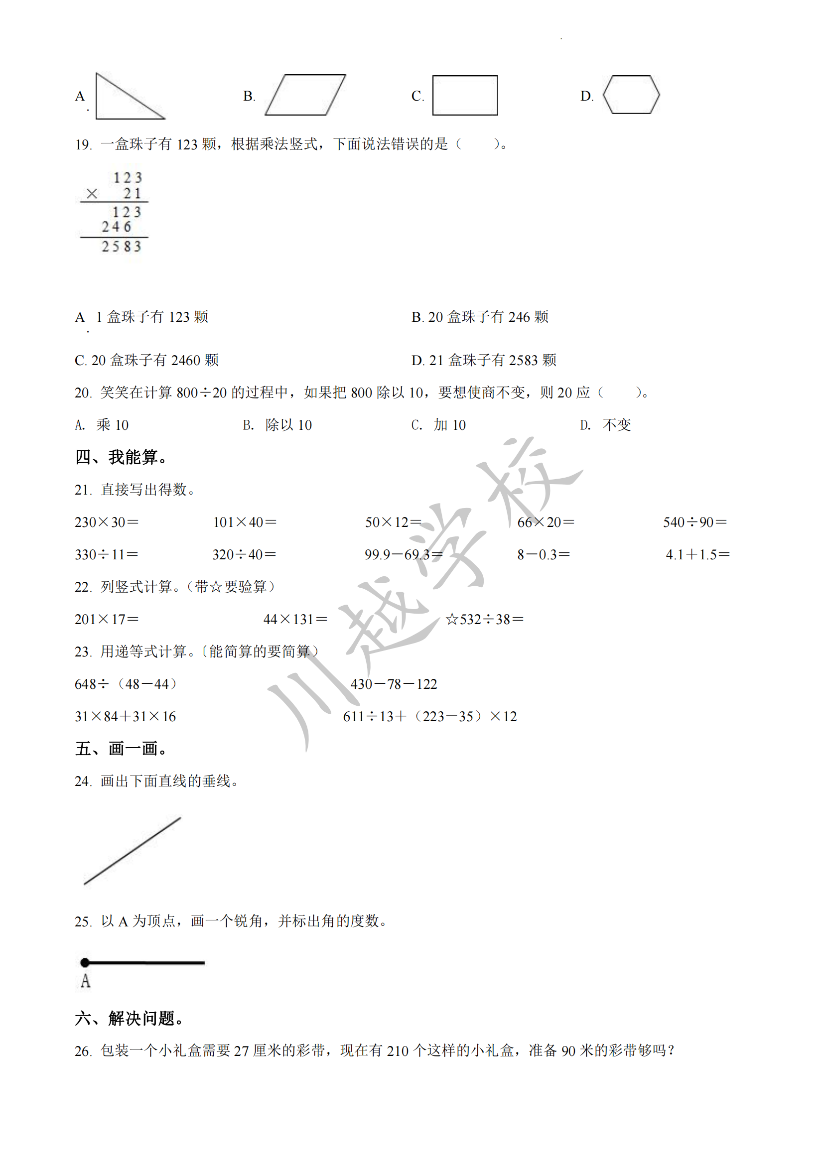 2024-02-01 | 文章來源:2021-2022學(xué)年四川省成都市錦江區(qū)北師大版四年級上冊期末測評數(shù)學(xué)試卷(原卷版) | 分享到: