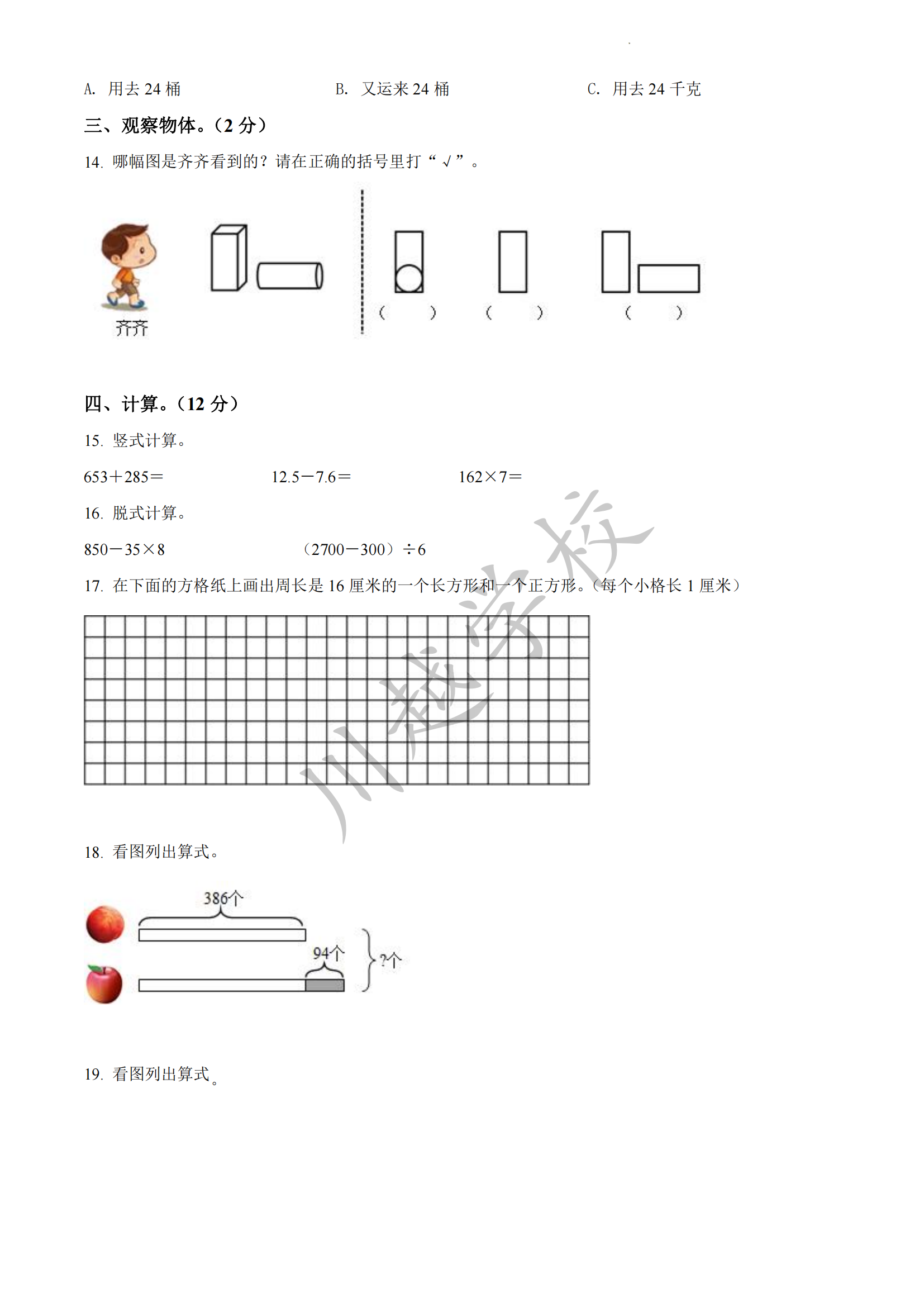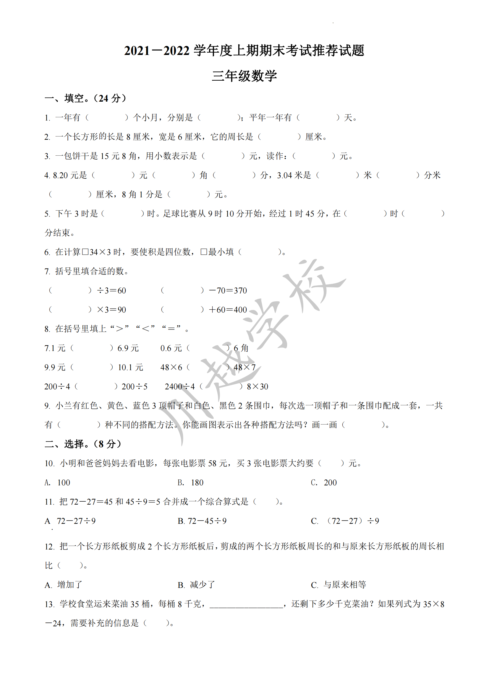 2024-02-01 | 文章來源:2021-2022學(xué)年四川省邛崍市北師大版三年級上冊期末考試推薦數(shù)學(xué)試卷(原卷版) | 分享到: