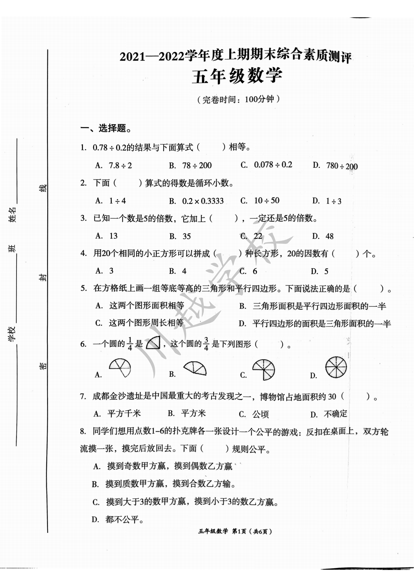 2024-02-01 | 文章來源:四川省成都市高新技術產(chǎn)業(yè)開發(fā)區(qū)-2021-2022學年五年級上學期數(shù)學期末綜合素質(zhì)測評卷 | 分享到: