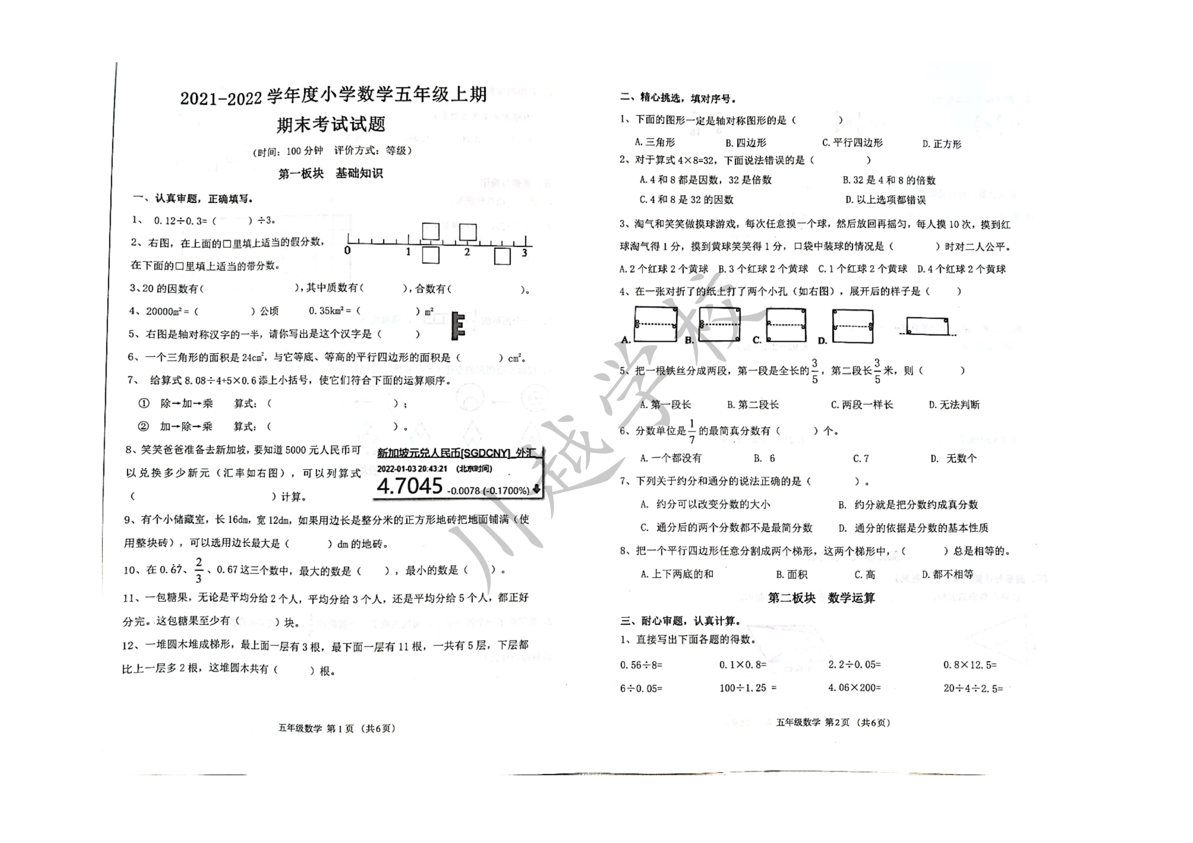 2024-02-02 | 文章來源:四川省成都市金牛區(qū)2021-2022學年五年級上學期期末考試數(shù)學試題 | 分享到: