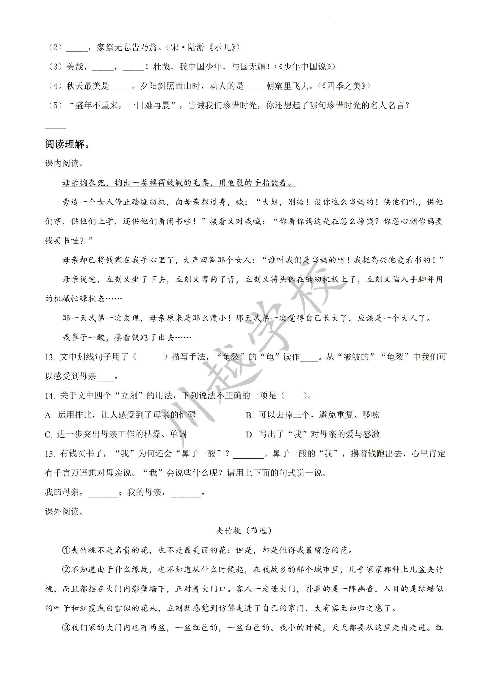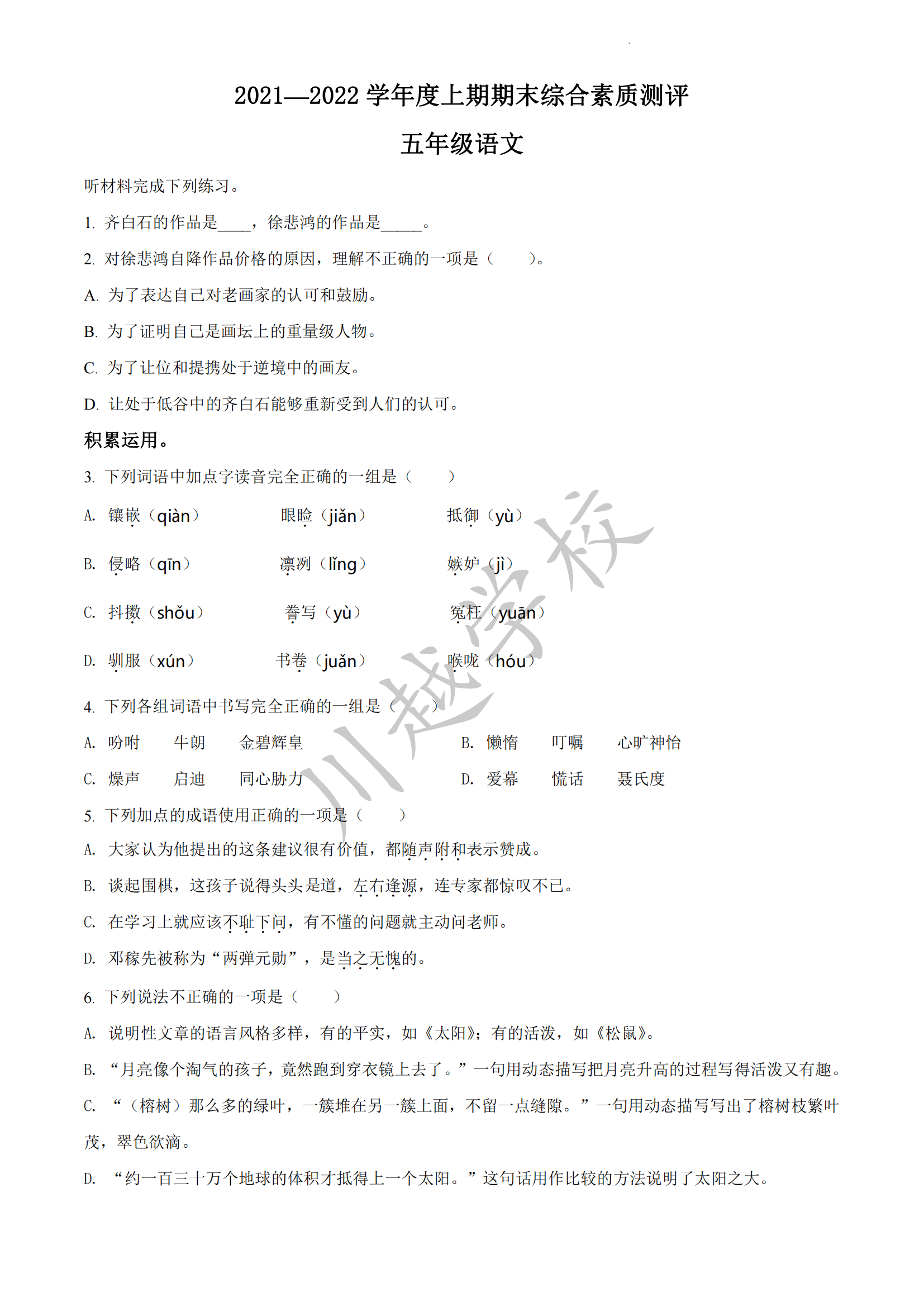 2024-02-02 | 文章來源:2021-2022學(xué)年四川省成都市高新區(qū)部編版五年級上冊期末測試語文試卷(原卷版) | 分享到:
