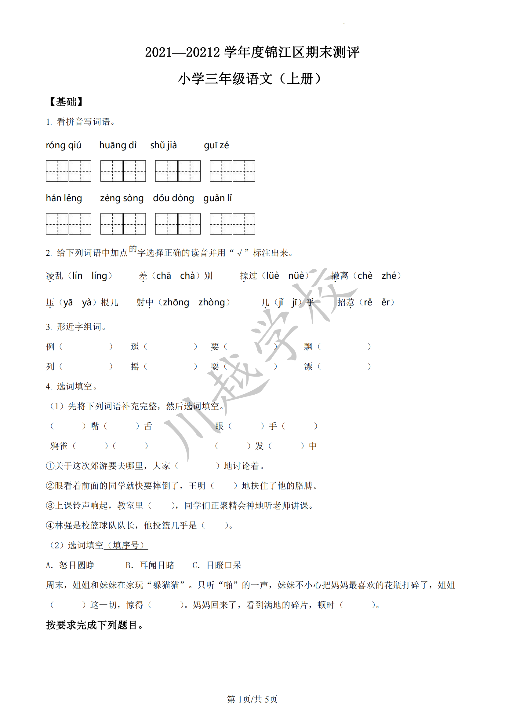 2024-02-02 | 文章來源:2021-2022學(xué)年四川省成都市錦江區(qū)部編版三年級上冊期末考試語文試卷(原卷版) | 分享到: