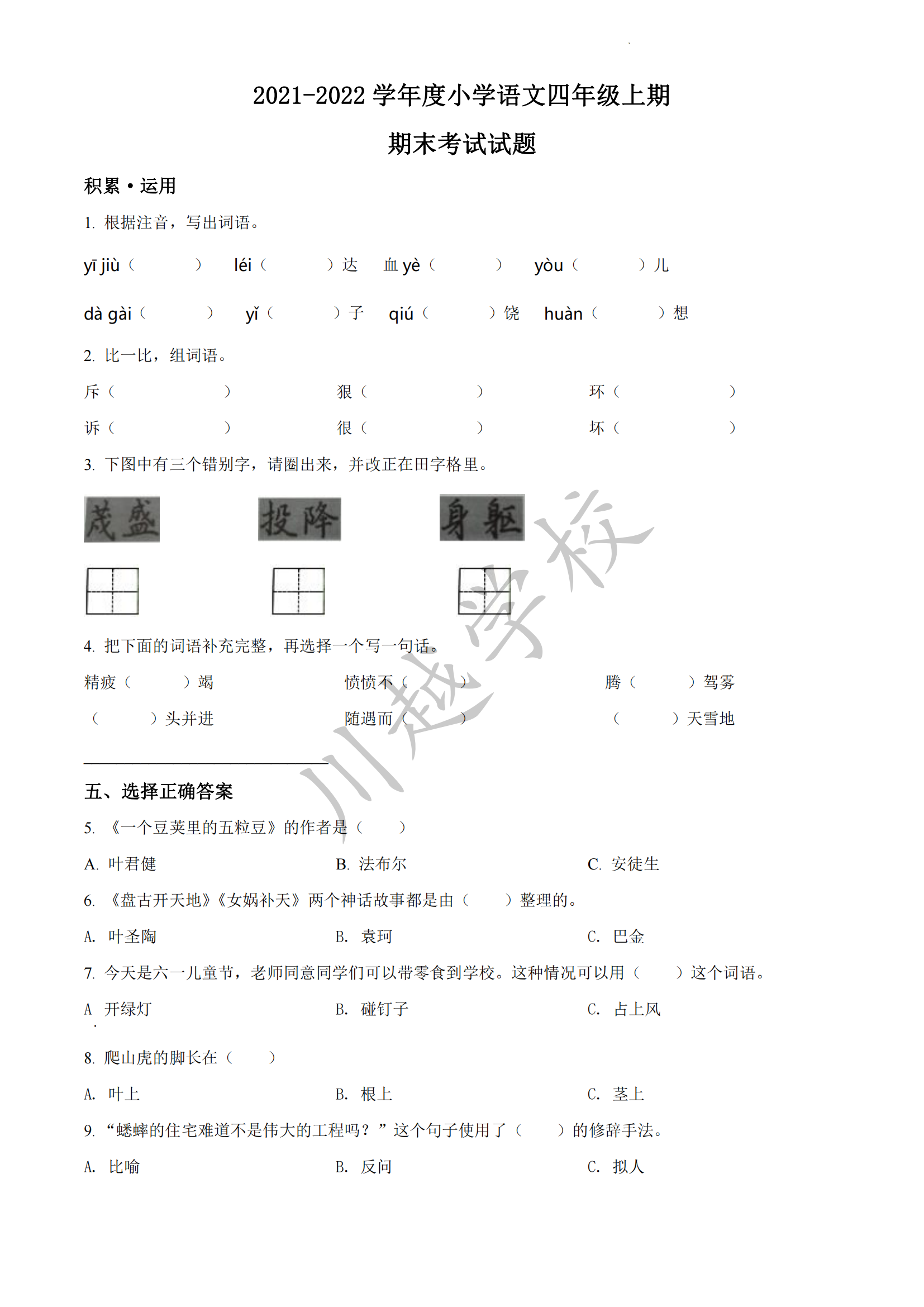 2024-02-02 | 文章來源:2021-2022學年四川省成都市武侯區(qū)部編版四年級上冊期末考試語文試卷(原卷版) | 分享到: