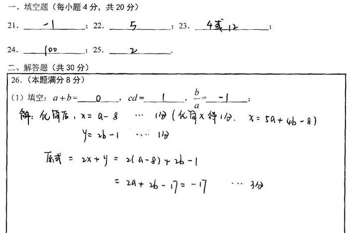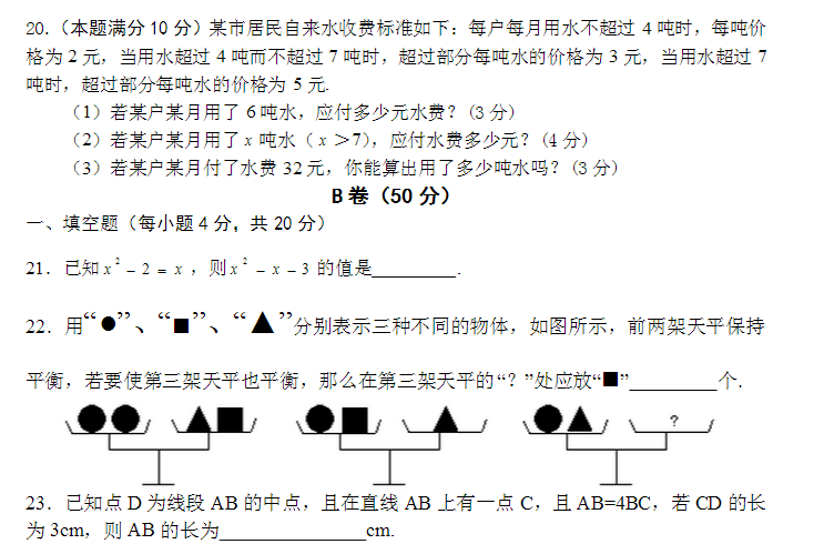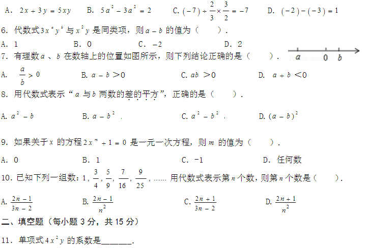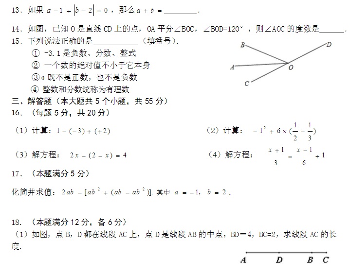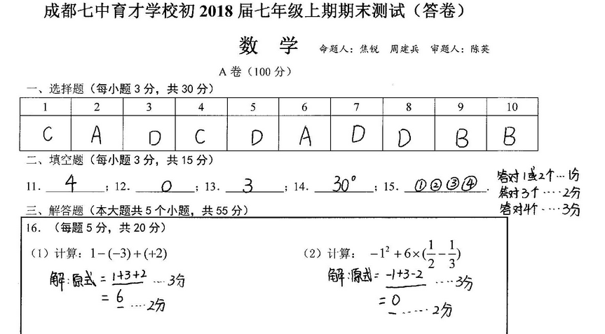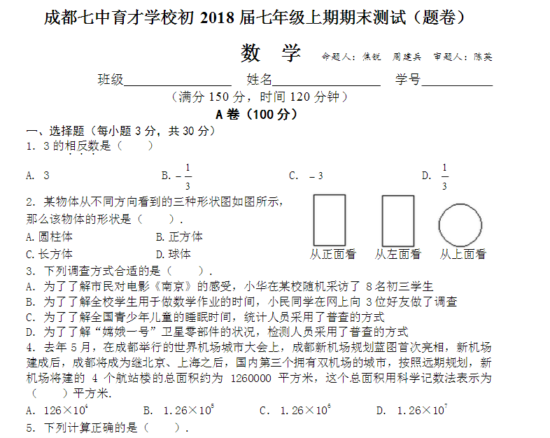 成都市七中育才學(xué)校2015-2016學(xué)年七年級(jí)上學(xué)期期末考試數(shù)學(xué)試題
