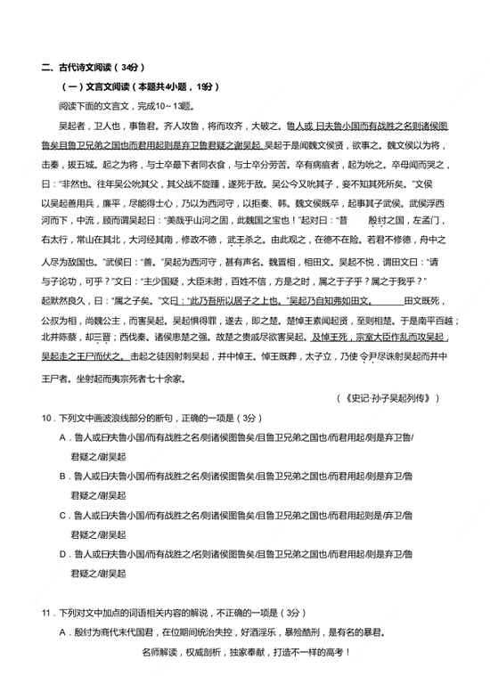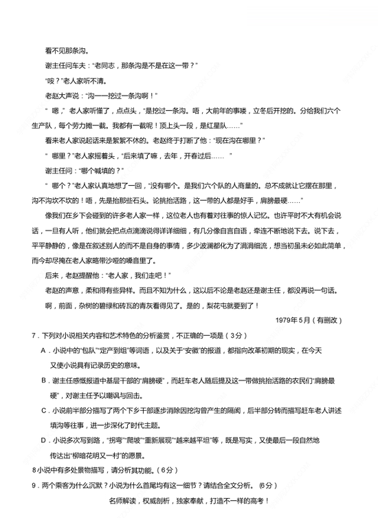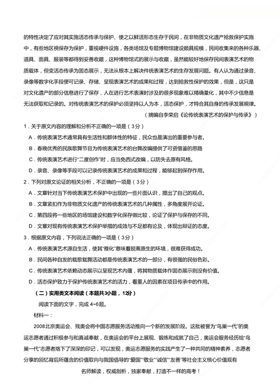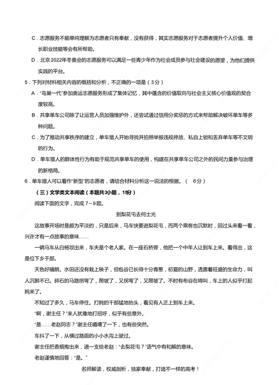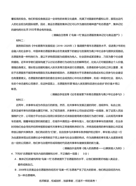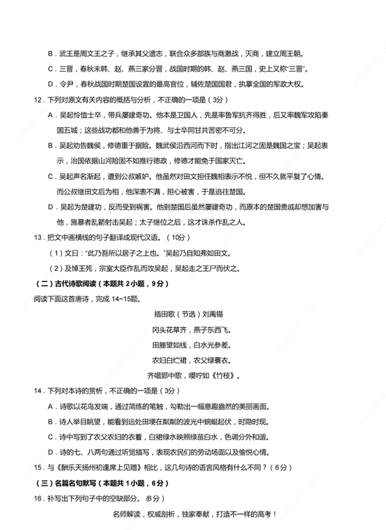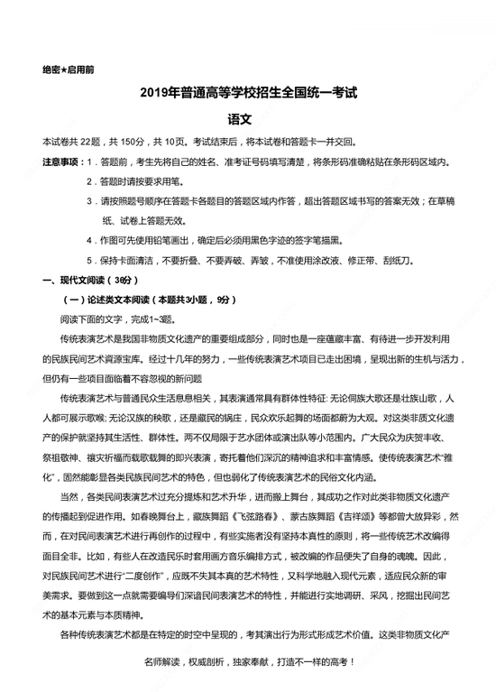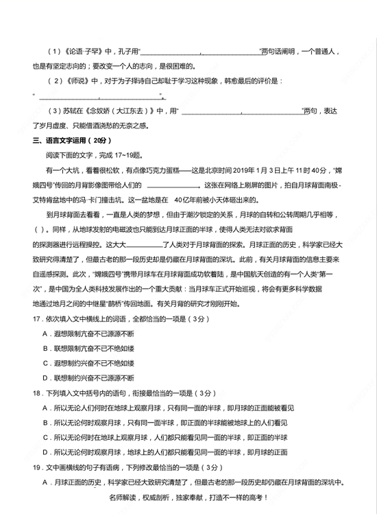 2019年高考語文真題及參考答案(全國卷Ⅲ)