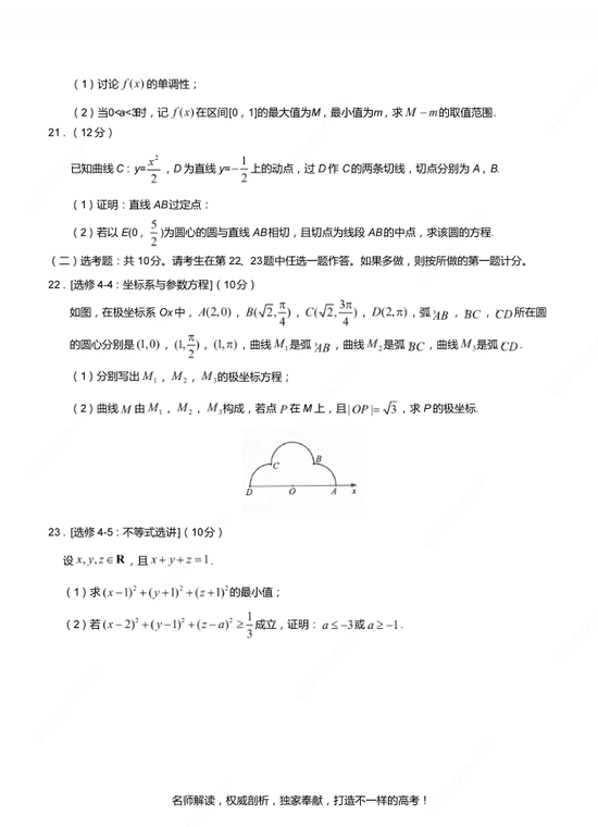 成都高三二診試題(數(shù)學(xué)理科) 2021-03-30