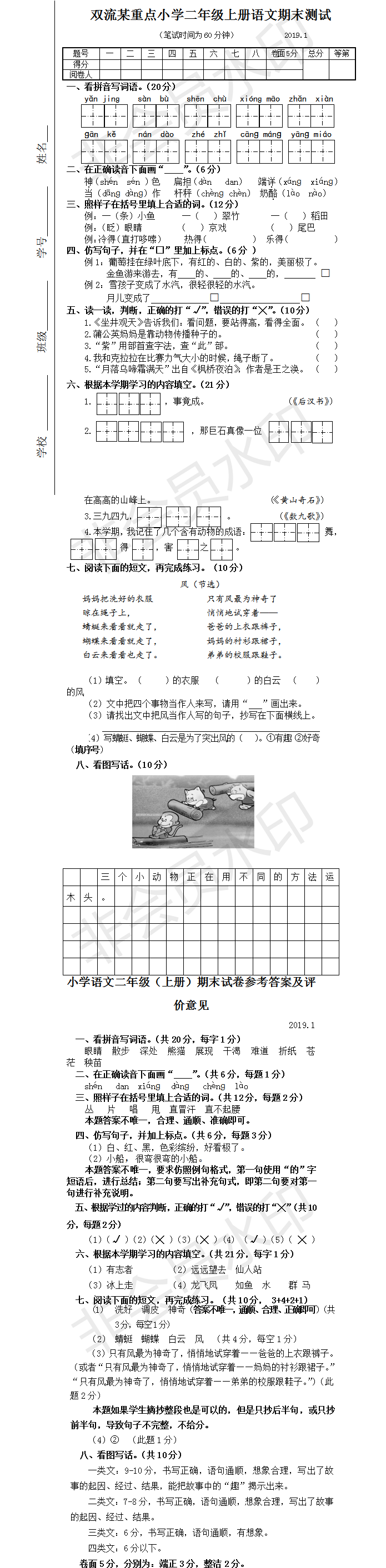 雙流某重點(diǎn)小學(xué)二年級(jí)上冊(cè)語文期末測(cè)試5
