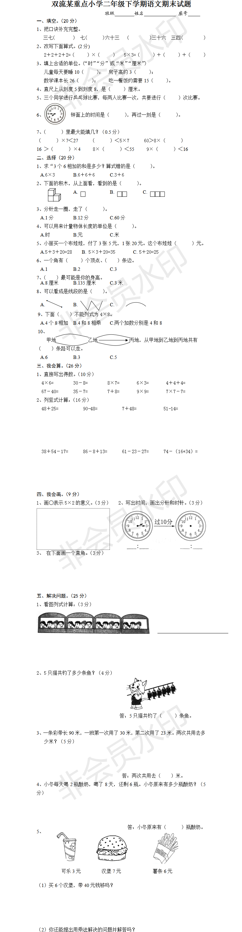 二年級(jí)上冊數(shù)學(xué)試題 -5