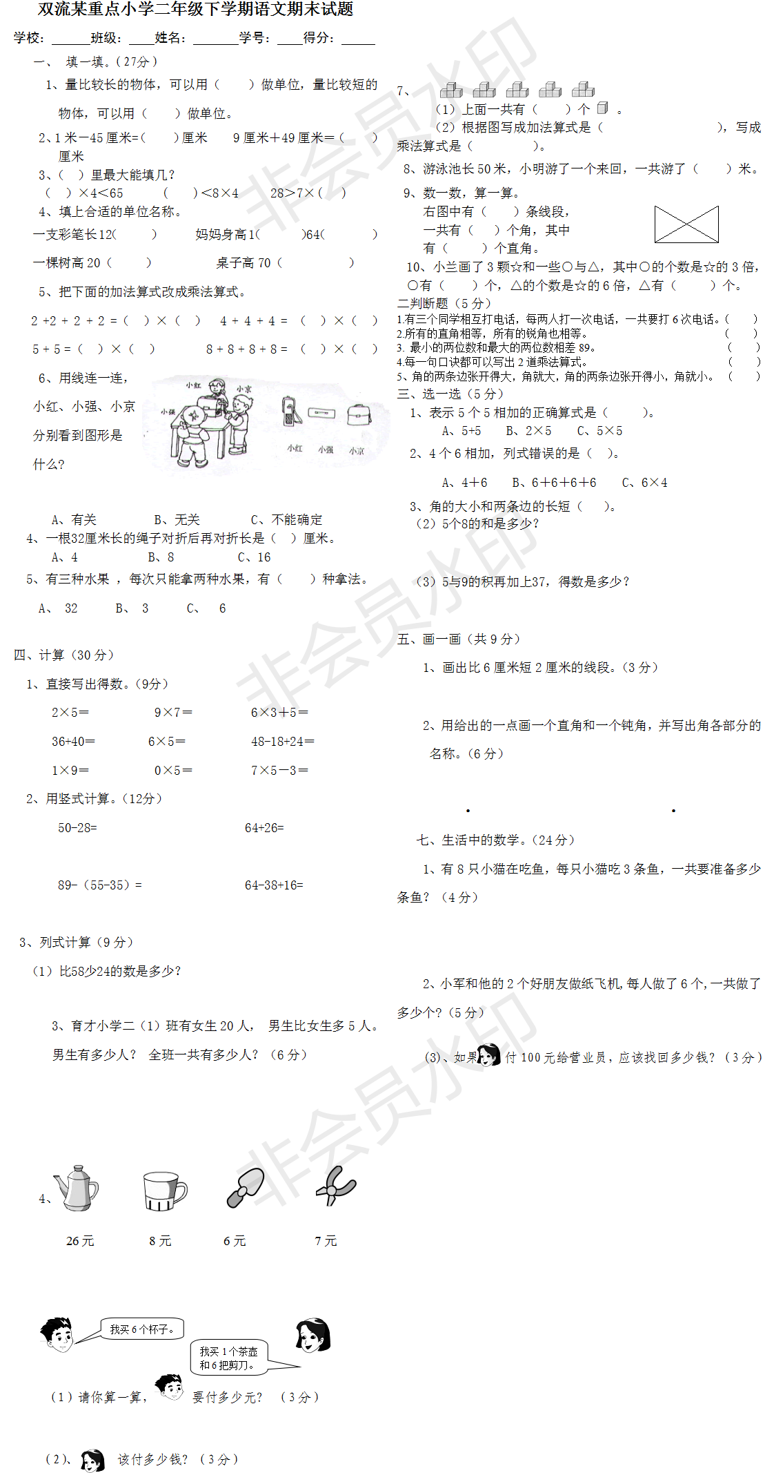 二年級(jí)上冊(cè)數(shù)學(xué)試題 -7