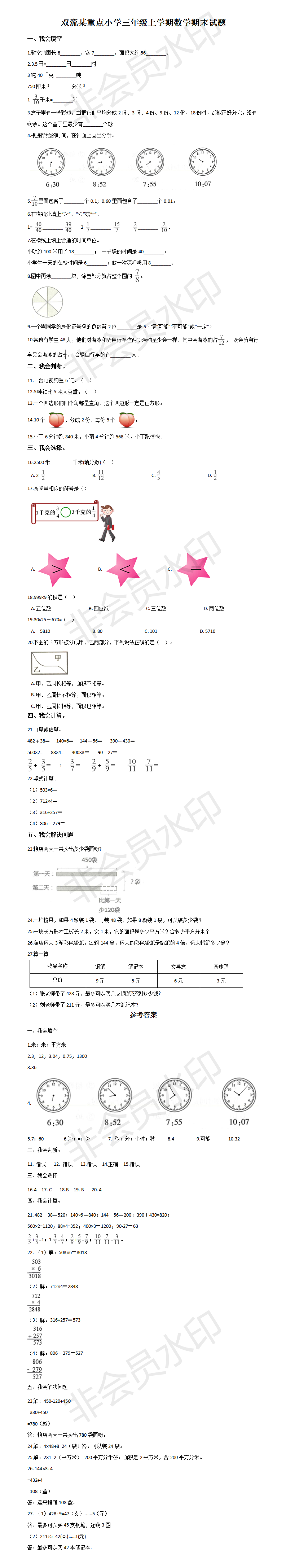 三年級上冊數(shù)學試題-2