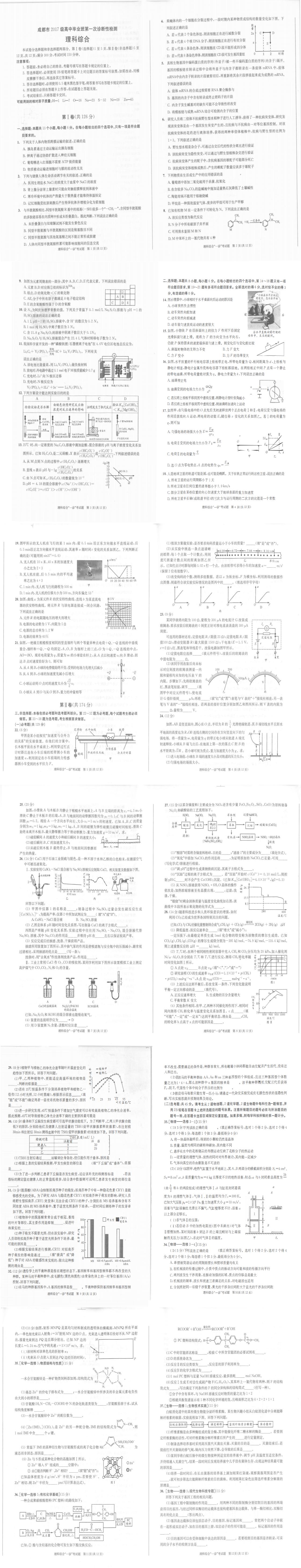 成都市2017級(jí)高中畢業(yè)班第一次診斷性檢測(cè)理綜試卷