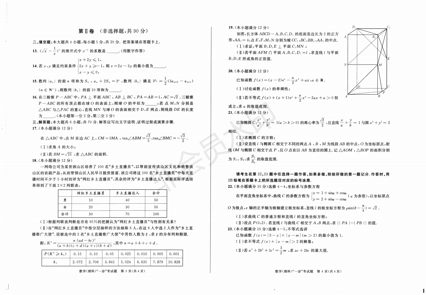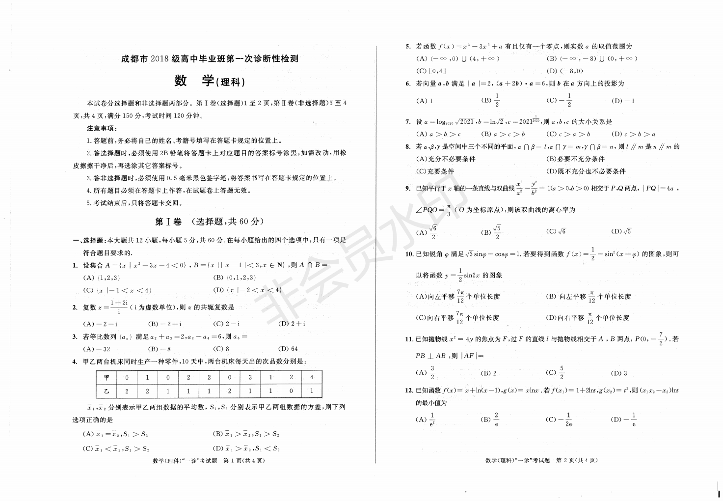 成都高三二診試題(數(shù)學(xué)理科) 2021-03-30