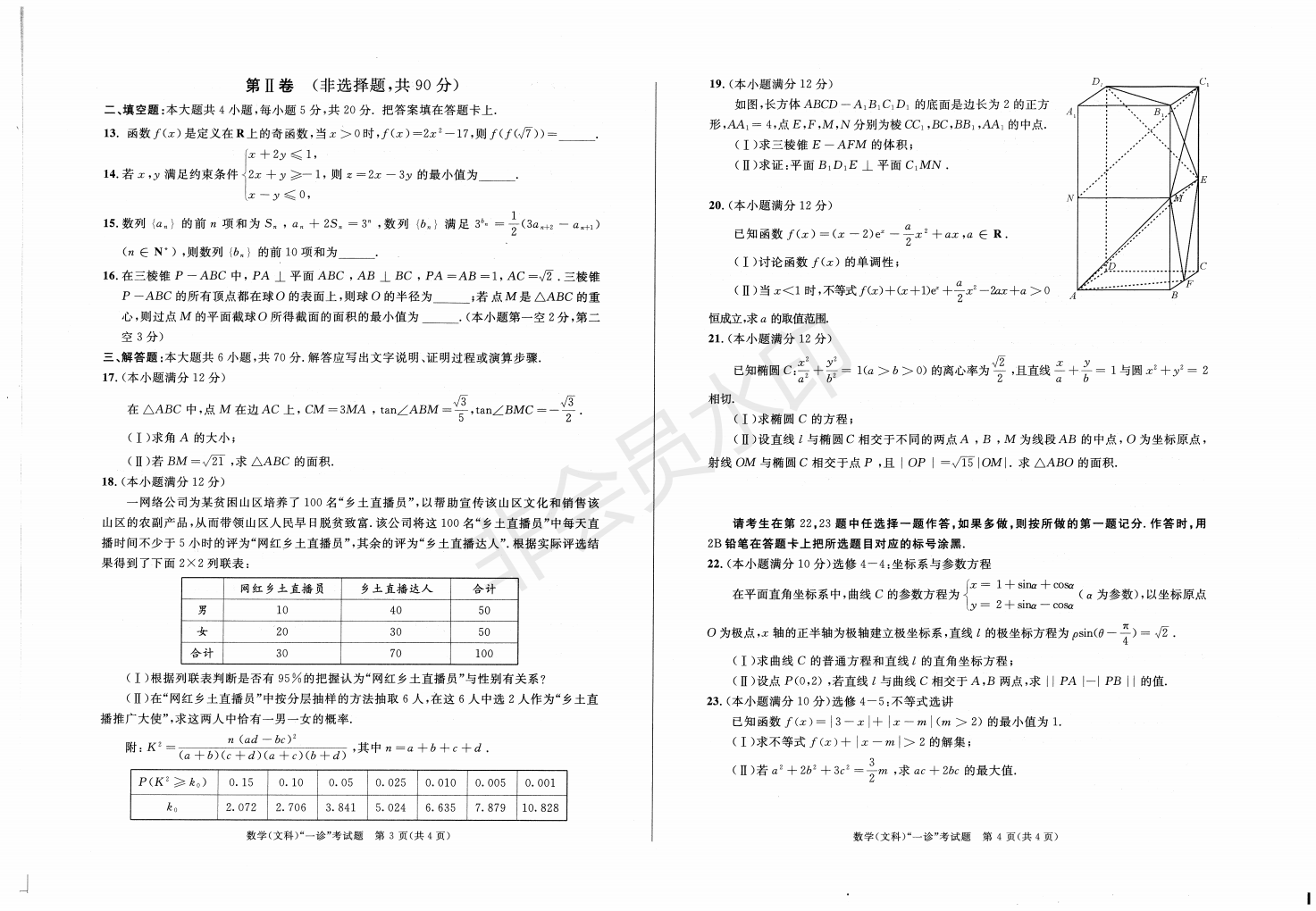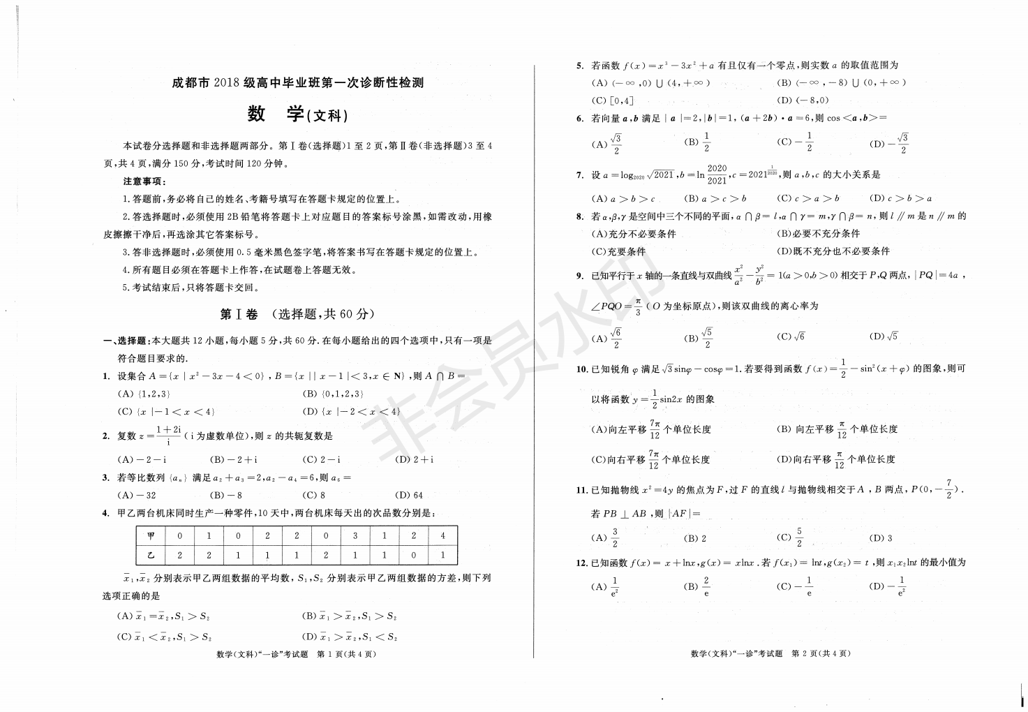 成都高三二診試題(數(shù)學(xué)理科) 2021-03-30