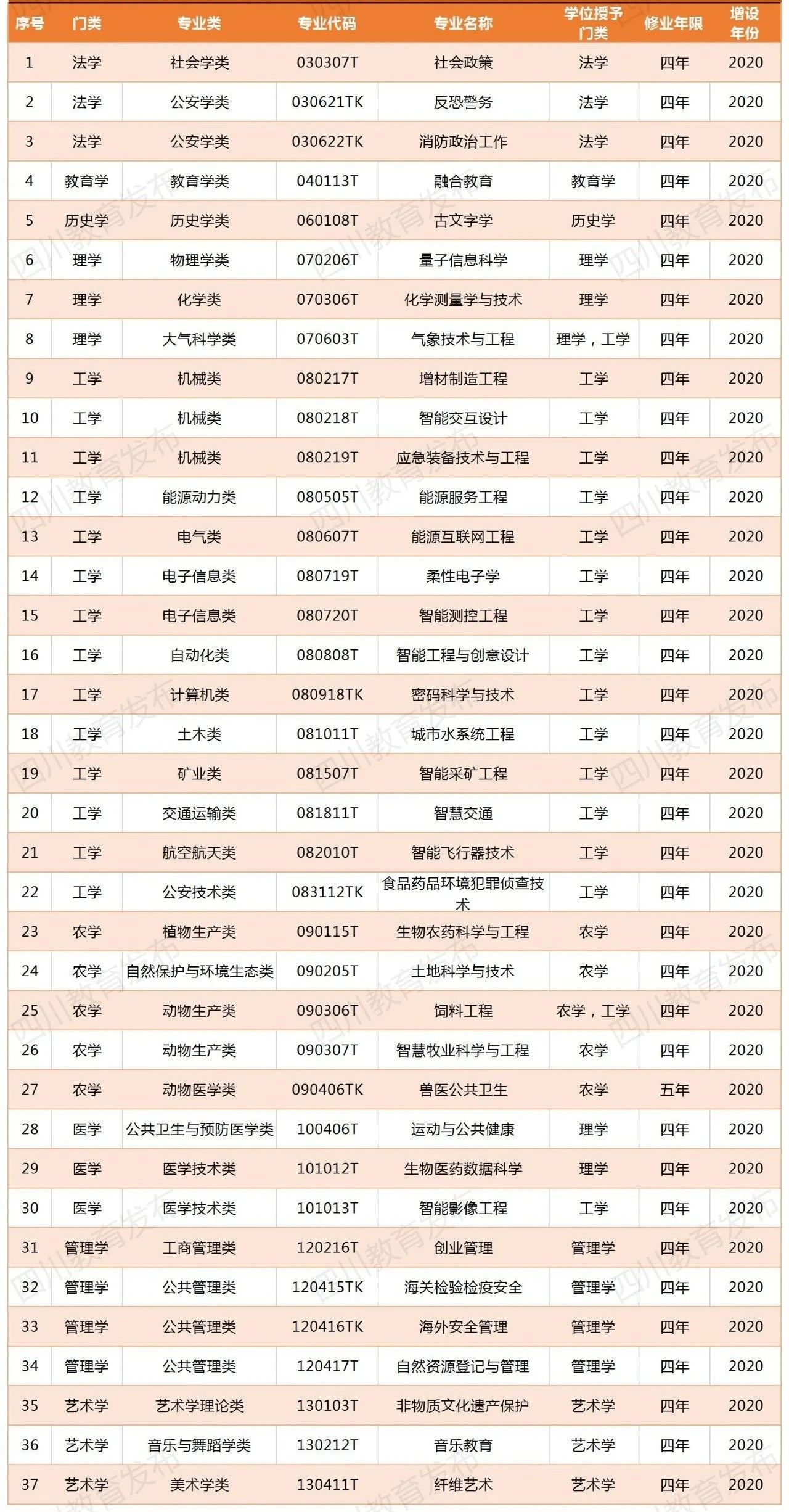 2020年度普通高等學(xué)校本科專業(yè)備案和審批結(jié)果(四川)