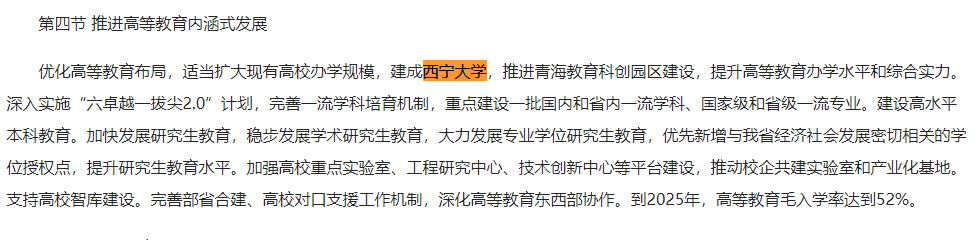 2021年2月,青海省十四五規(guī)劃出爐,明確提出建成西寧大學(xué),建設(shè)一流學(xué)科。