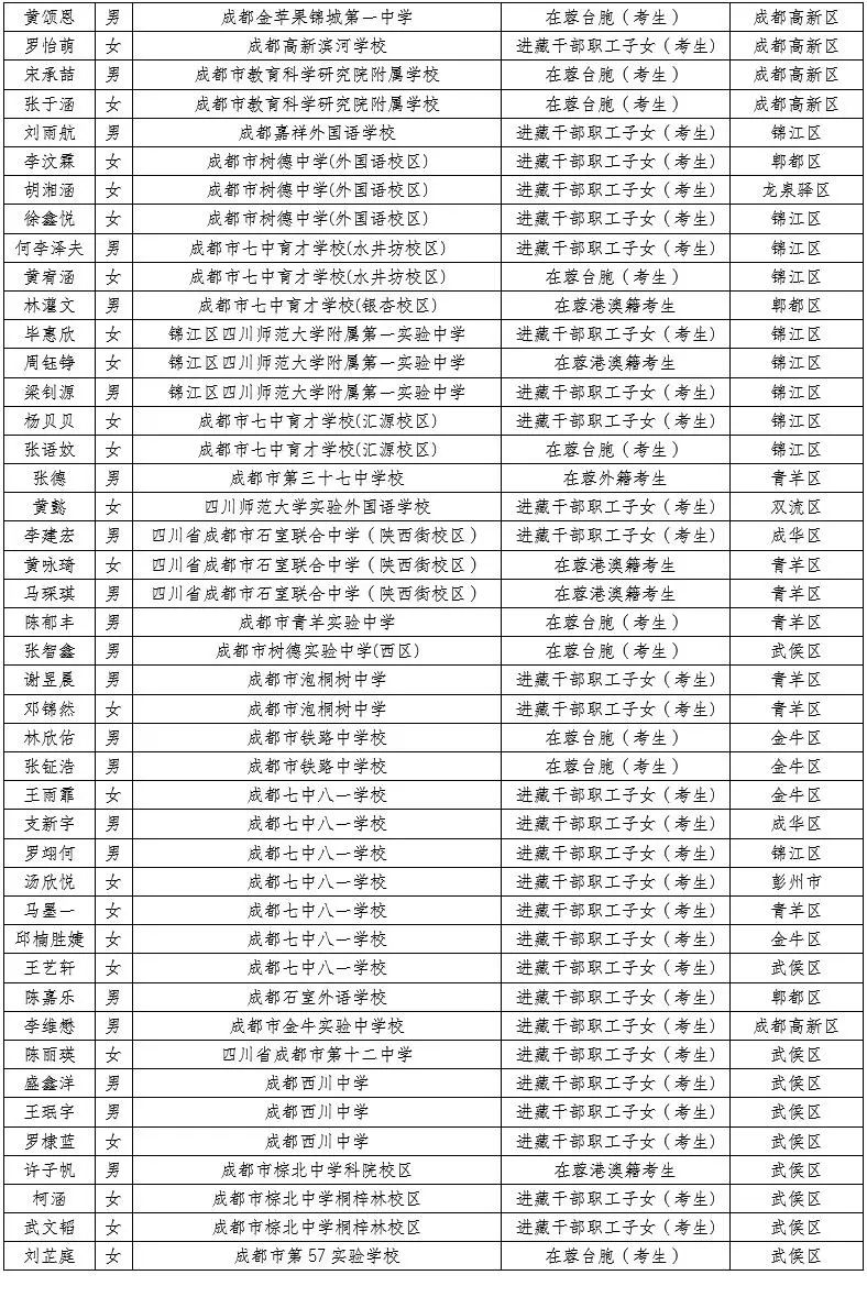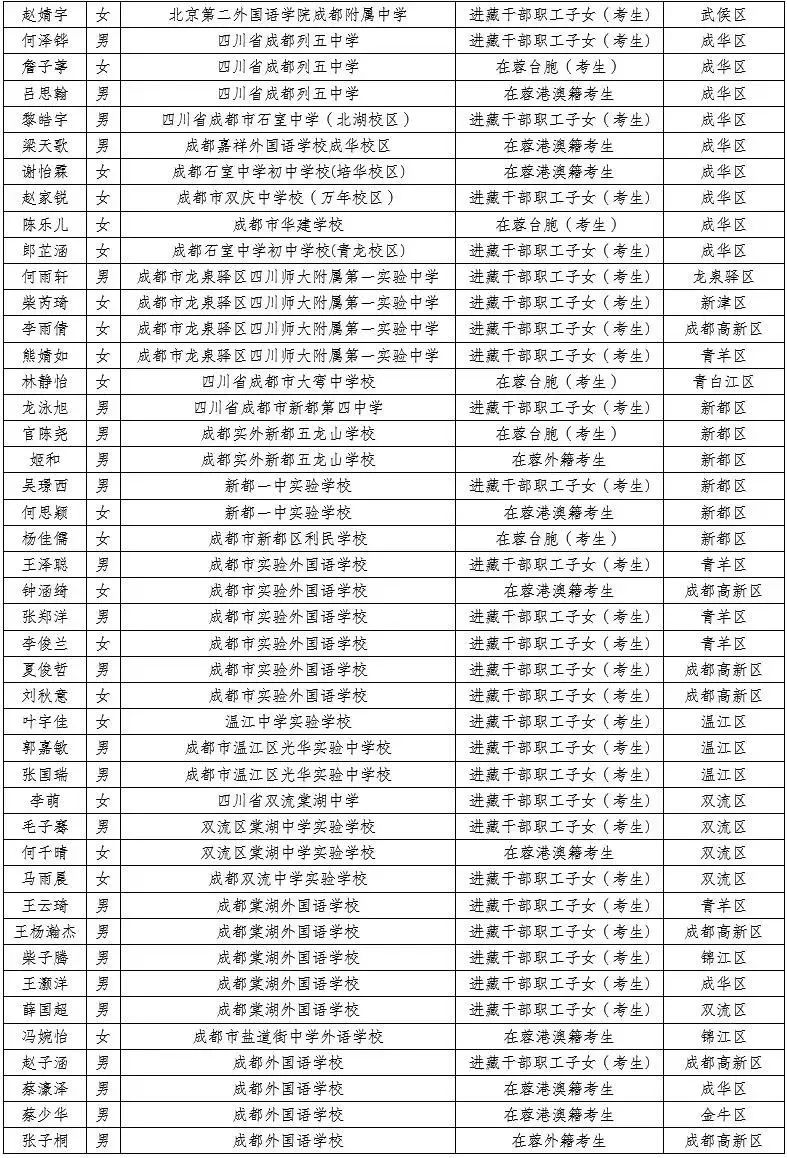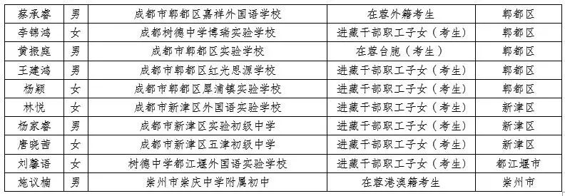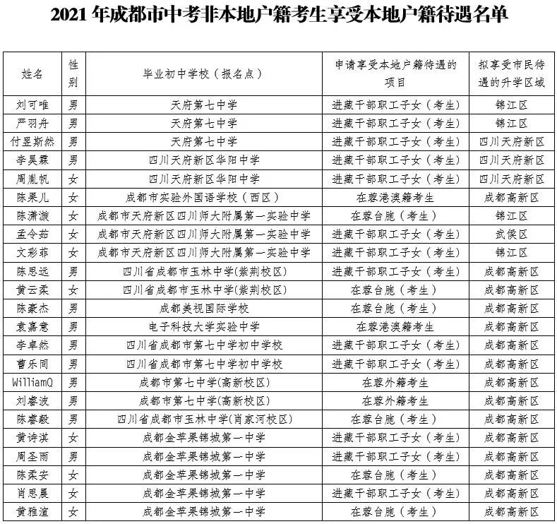 2021年成都市中考非本地戶籍考生享受本地戶籍待遇名單公布,看看有你的名字沒?