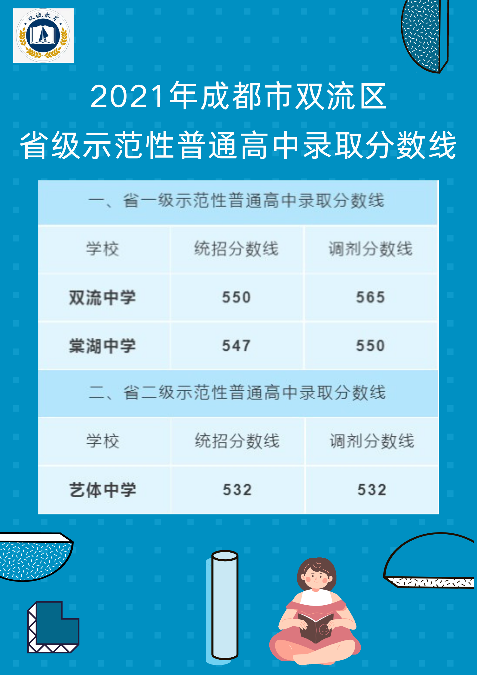 2021年成都市雙流區(qū)省級示范性普通高中錄取分數(shù)線劃定,雙流中學、棠湖中學統(tǒng)招分數(shù)線和調(diào)劑分數(shù)線出爐。