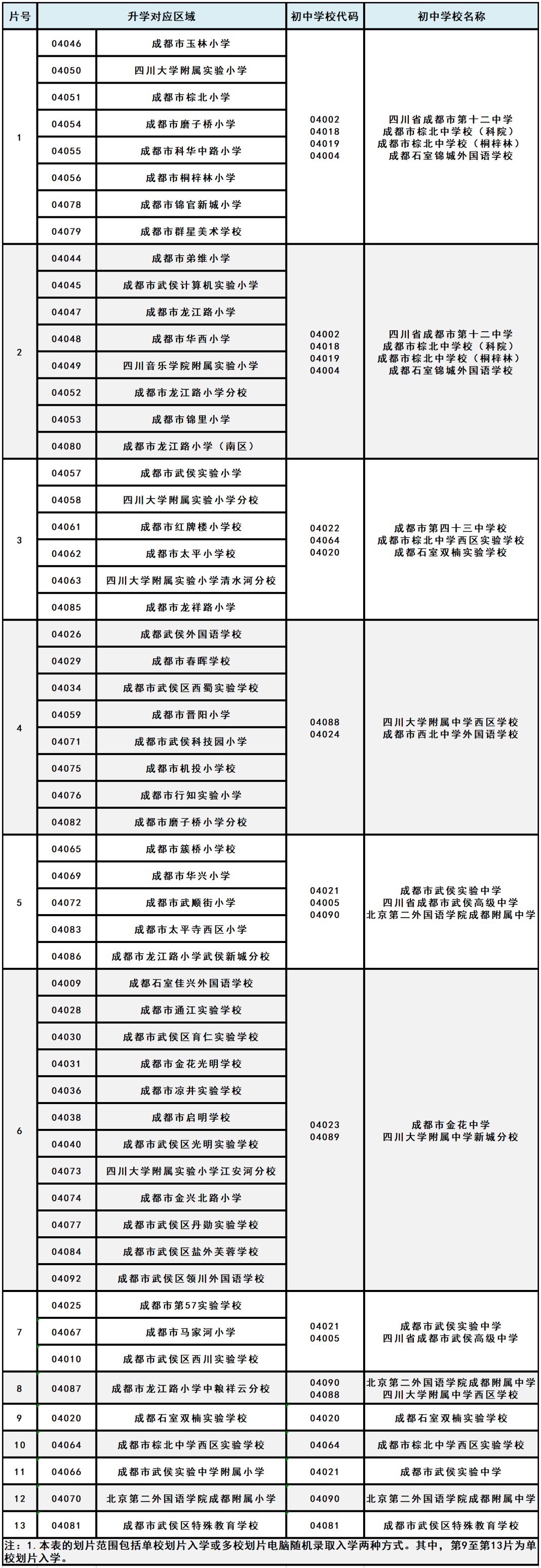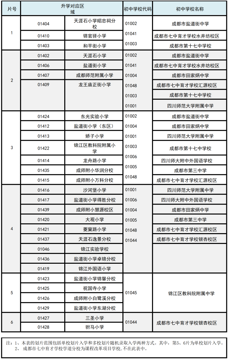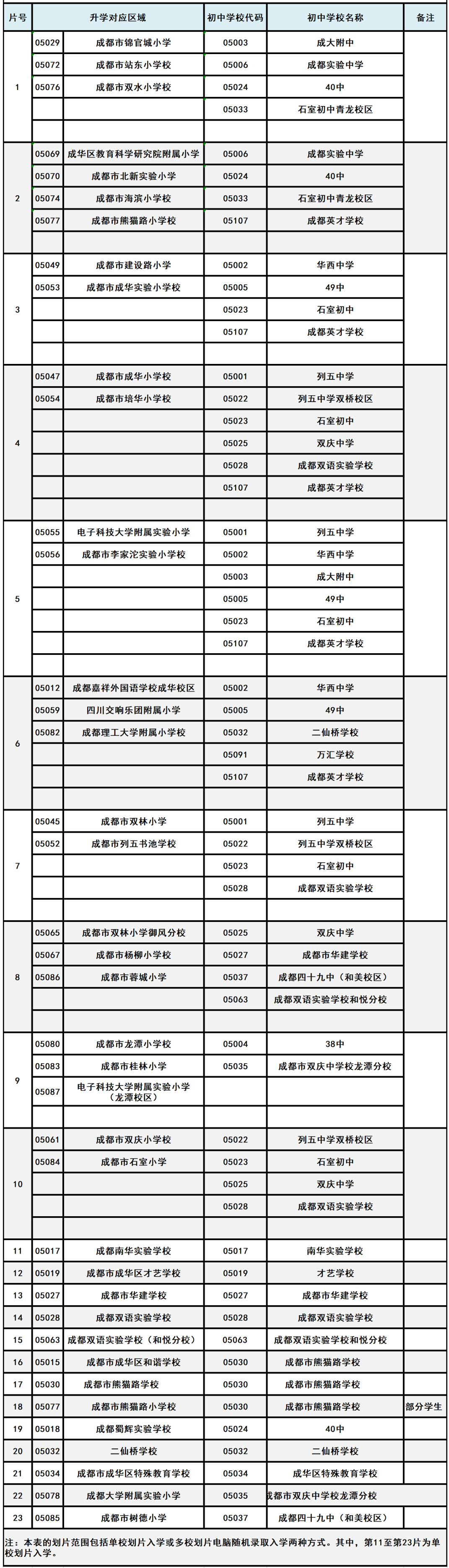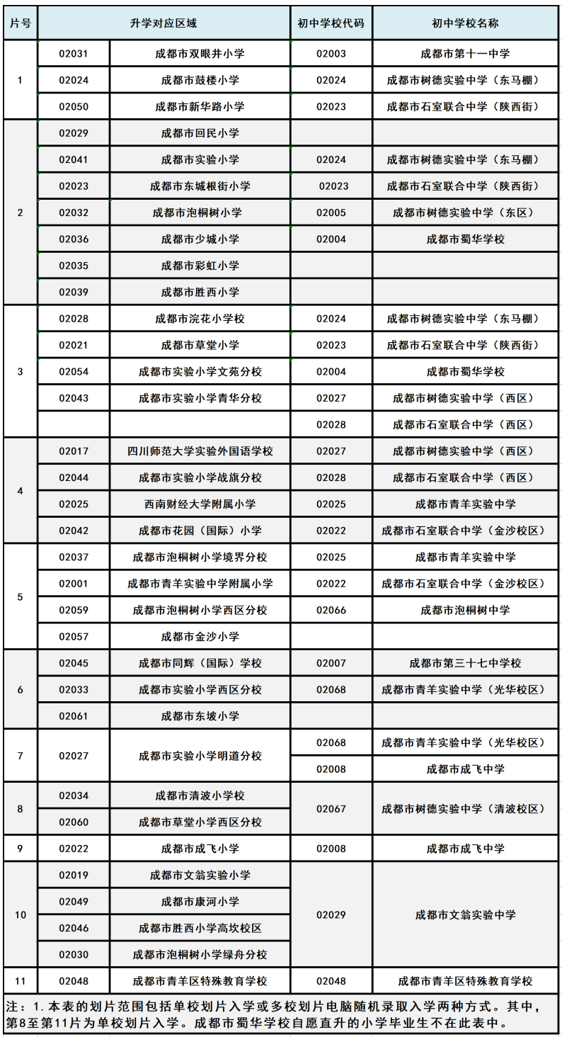 成都市中心城區(qū)成都小升初劃片范圍匯總