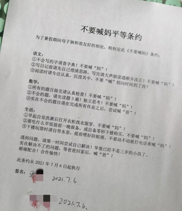 簽訂“條約”的當(dāng)晚還跟媽媽開玩笑說: