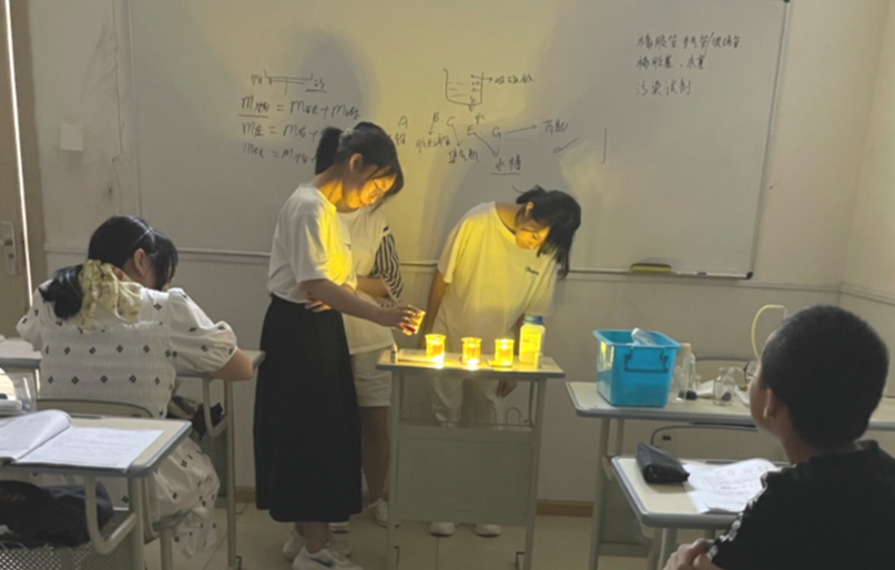 還會在每一堂課前都安排一個實(shí)驗(yàn)視頻和現(xiàn)場實(shí)驗(yàn)教學(xué),甘老師表示“學(xué)生們都喜歡做實(shí)驗(yàn),他們覺得非常新奇,多做實(shí)驗(yàn)對他們的動手能力、知識理解都非常有幫助,還能加強(qiáng)學(xué)生對化學(xué)這門學(xué)科的興趣。”