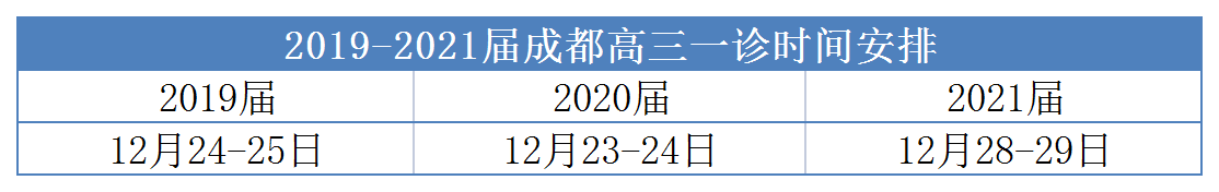 暑假即將結束,準高三學子們即將迎來高三一年中的第一次重要考試——高三一診,下表是川越君為同學們整理的2019-2021屆成都高三一診時間表。
