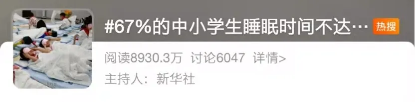 近日,熱搜上有這么一條新聞:教育部新聞發(fā)布會上的一項調(diào)查問卷數(shù)據(jù)顯示,67%的中小學(xué)生睡眠時間不達(dá)標(biāo)。38%的中小學(xué)生就寢時間晚于規(guī)定要求。