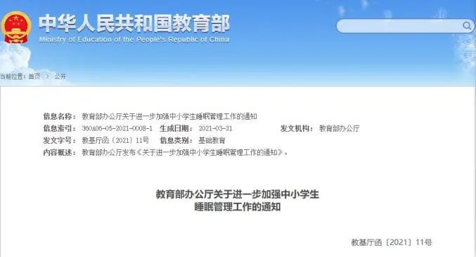 今年4月,教育部印發(fā)《關(guān)于進(jìn)一步加強(qiáng)中小學(xué)生睡眠管理工作的通知》其中進(jìn)一步指出: